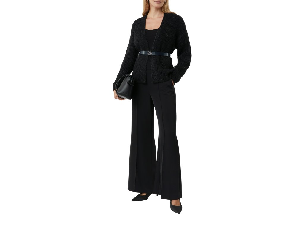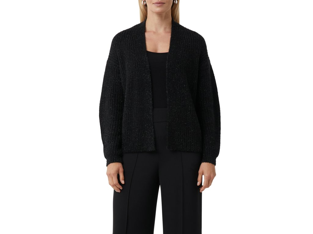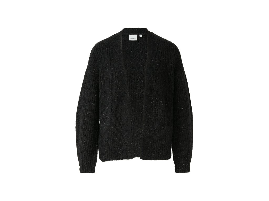 Elegantní černý kardigan s jemným třpytem dodá vašemu outfitu šmrnc i v chladnějších dnech. Volný střih bez zapínání působí ležérně a zároveň sofistikovaně. Skvělý k džínům i k elegantním kalhotám.