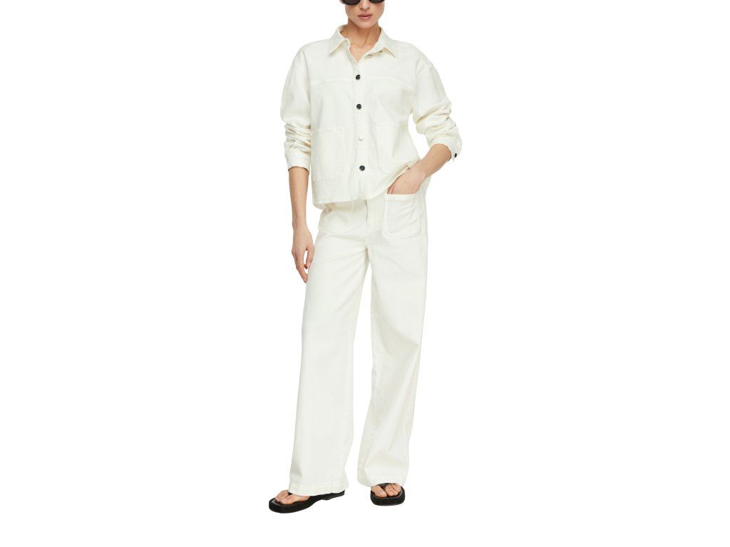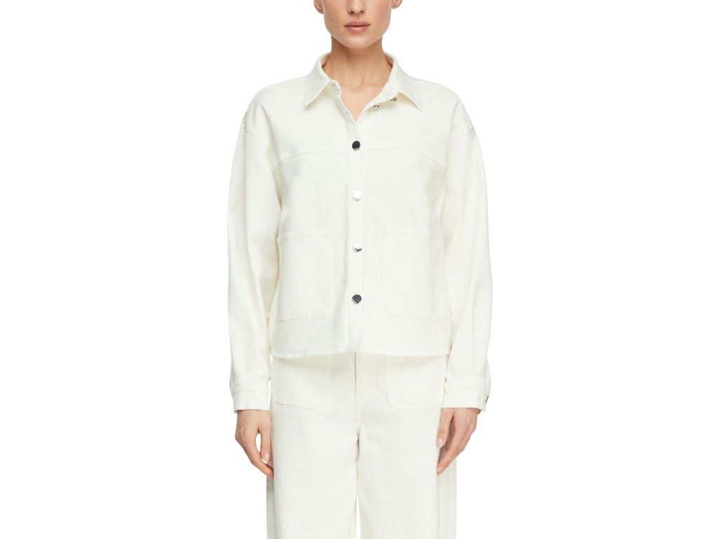 Bunda má klasické zapínání na knoflíky, límeček a dvě přední kapsy, které dodávají outfitu ležérní charakter. Skvěle se hodí k džínům, kalhotám i sukni.