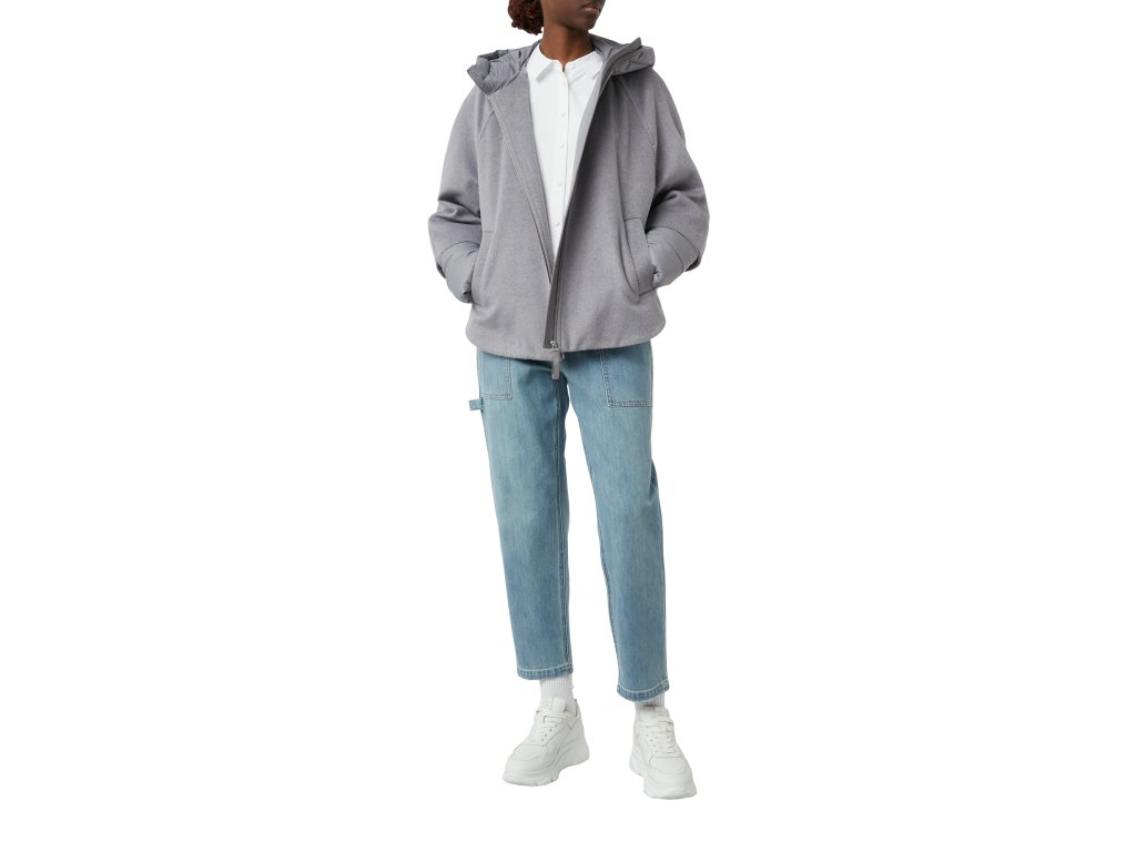 Moderní šedá bunda kombinuje ležérní střih s praktickými detaily. Je vybavena hřejivou kapucí a prošívanými rukávy, které dodávají originální vzhled i funkčnost. Díky pohodlnému materiálu je bunda ideální na každodenní nošení do města i na volný čas.