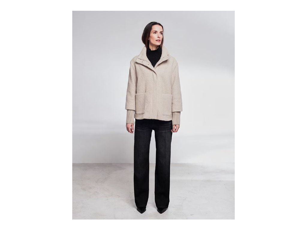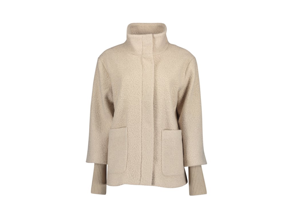 Stylová bunda v krémově bílé barvě, která zaujme svým moderním teddy vzhledem. Stojáček chrání před chladem a žebrované manžety dodávají sportovně-elegantní nádech. Příjemný materiál je hřejivý a pohodlný, ideální na chladnější dny.
