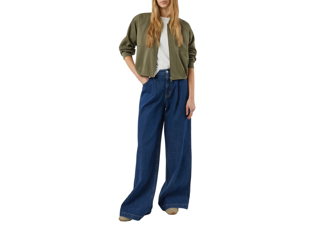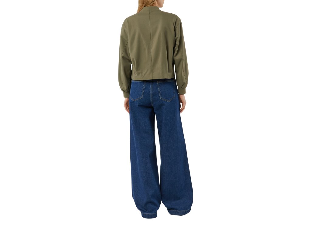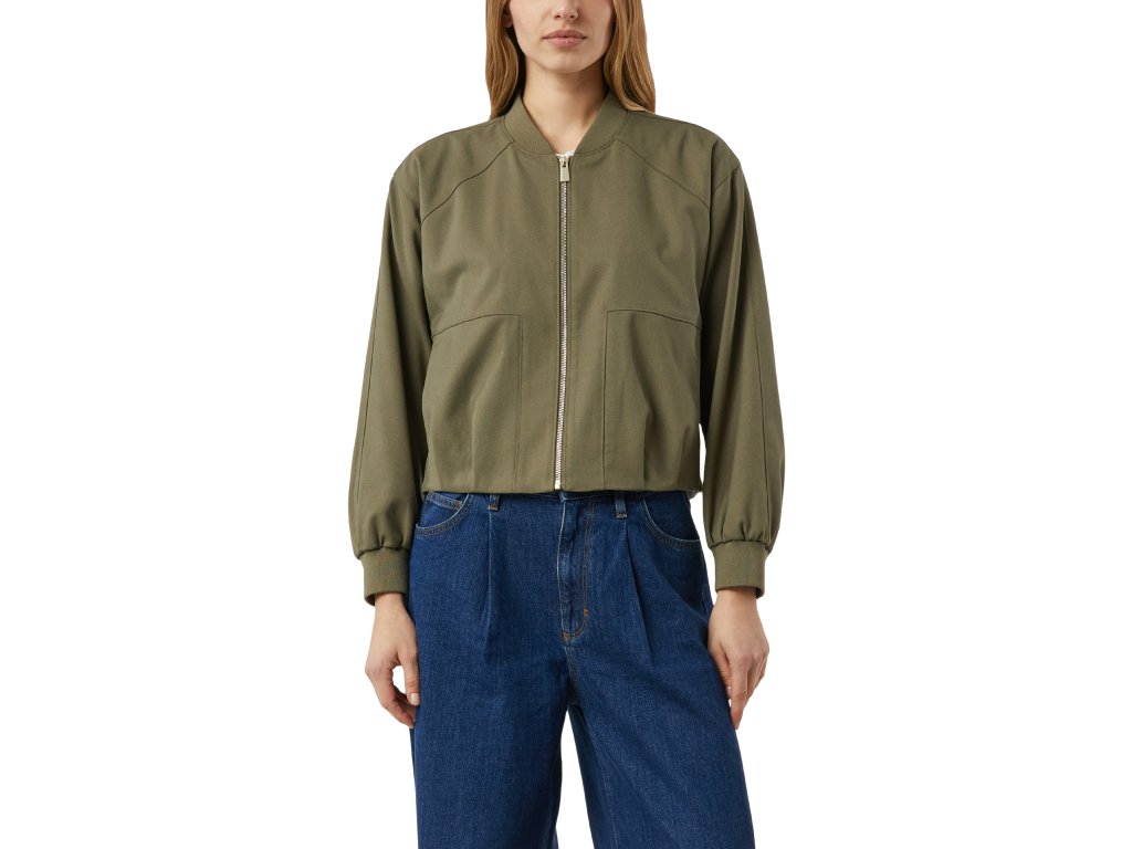 Krátká bomber bunda se zipem je stylový kousek, který dodá outfitu moderní, městský charakter. Čistý střih s elastickým lemem a manžetami zajišťuje pohodlí i skvělé padnutí, zatímco jemně strukturovaný materiál působí elegantně a nadčasově. Díky minimalistickému designu se bunda snadno kombinuje s kalhotami, šaty i sukněmi.