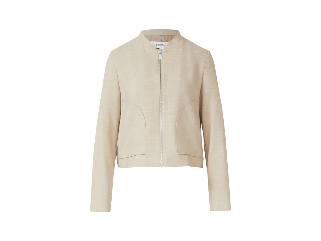 Dámská krátká bunda na zip v nadčasovém světlém odstínu působí čistě, sofistikovaně a velmi univerzálně. Kratší střih zvýrazňuje siluetu, zatímco jemně strukturovaný materiál dodává bundě elegantní charakter. Minimalistický stojáček, zip po celé délce a decentní kapsy vytvářejí moderní design, který se skvěle kombinuje s kalhotami, šaty i sukní.