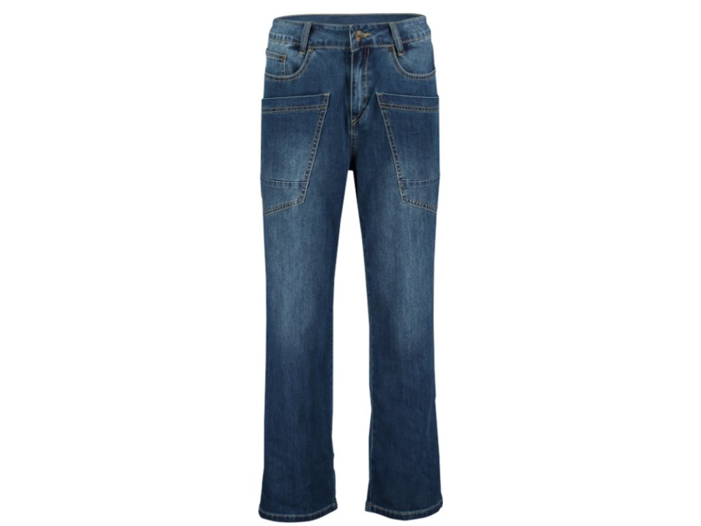 Dámské džíny s výraznými kapsami – moderní střih v tmavším modrém denimu, který působí uvolněně a ležérně. Originálním prvkem jsou velké našité přední kapsy, které dodávají kalhotám praktický i stylový charakter. Materiál zaručuje pohodlí, držení tvaru a příjemnou elasticitu při nošení. Díky rovnému střihu se snadno kombinují s tričkem, svetrem nebo košilí a hodí se jak na volný čas, tak na procházku do města.