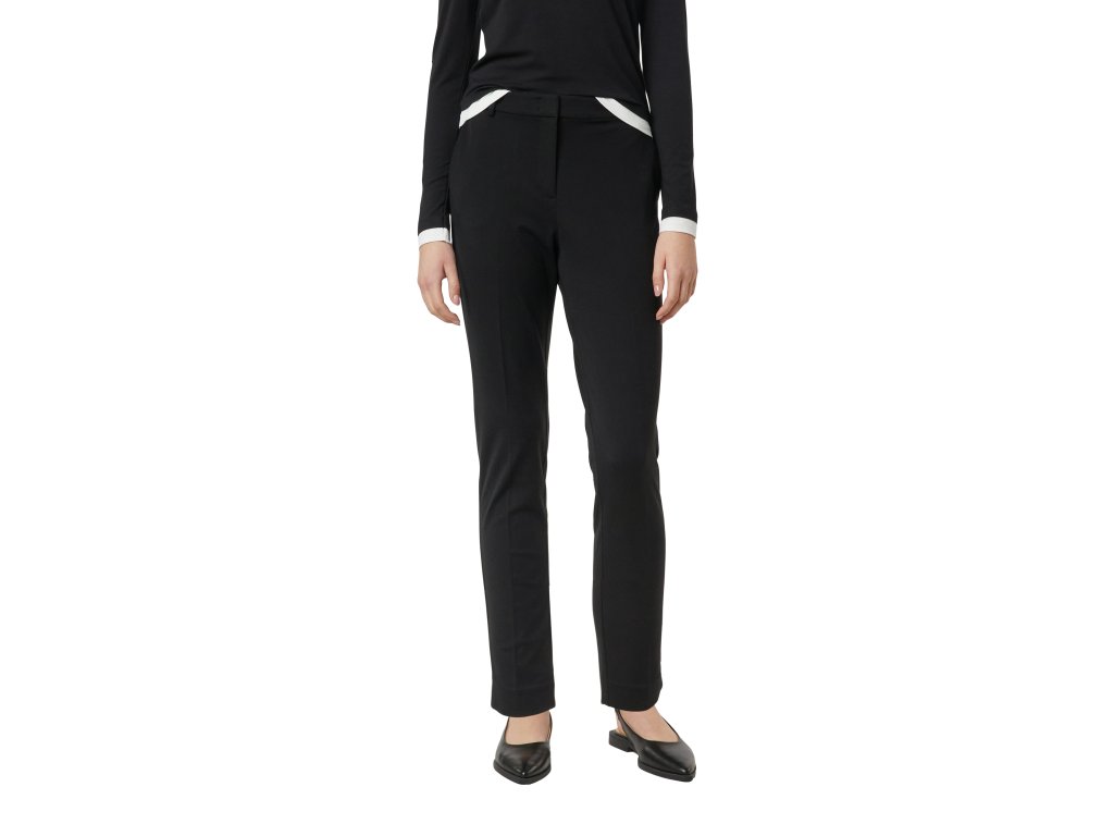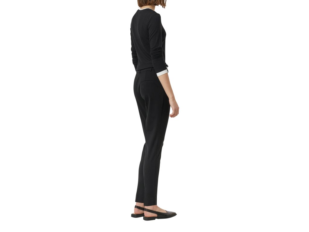Pohodlný materiál dobře drží tvar a zajišťuje komfort při celodenním nošení. Kalhoty snadno zkombinujete se sakem, košilí i jemným topem – ideální volba do kanceláře i na formálnější příležitosti.