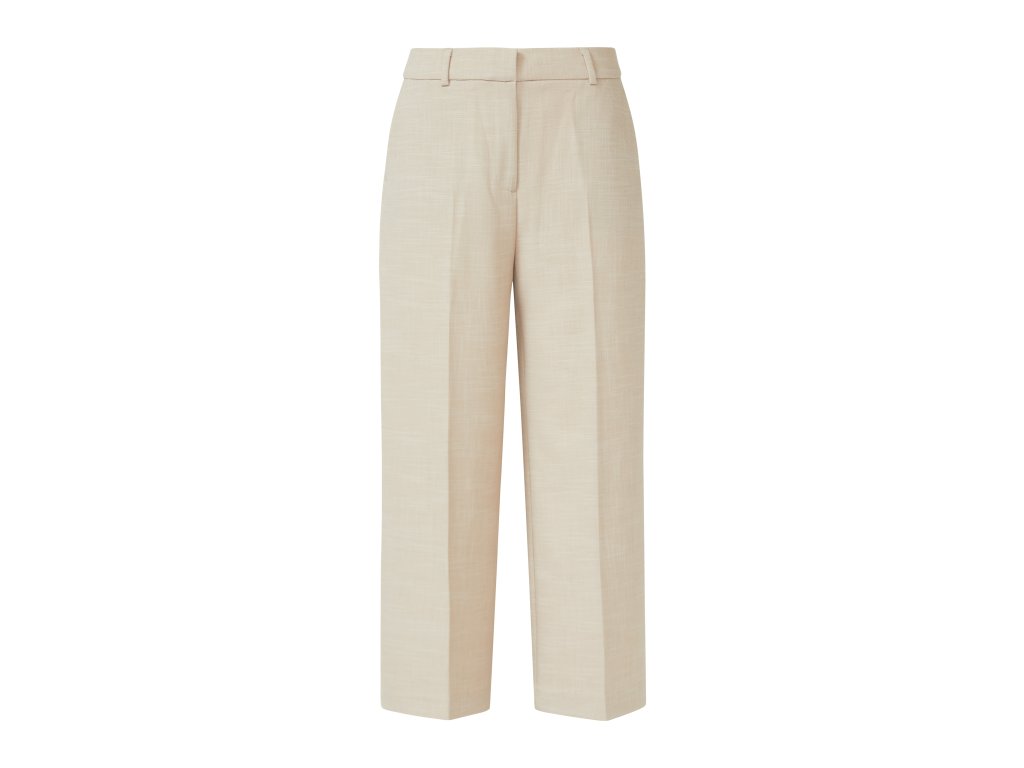 Dámské kalhoty s rovnými nohavicemi a vysokým pasem zaujmou čistým střihem a jemně strukturovaným materiálem. Elegantní linie nohavic opticky prodlužují siluetu, zatímco vyšší pas zajišťuje komfort i lichotivý vzhled. Neutrální světlý odstín umožňuje snadné kombinování – s halenkou, topem i sakem do kompletu.