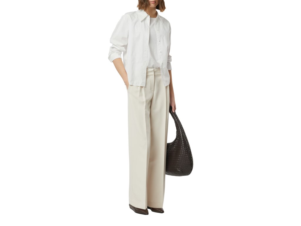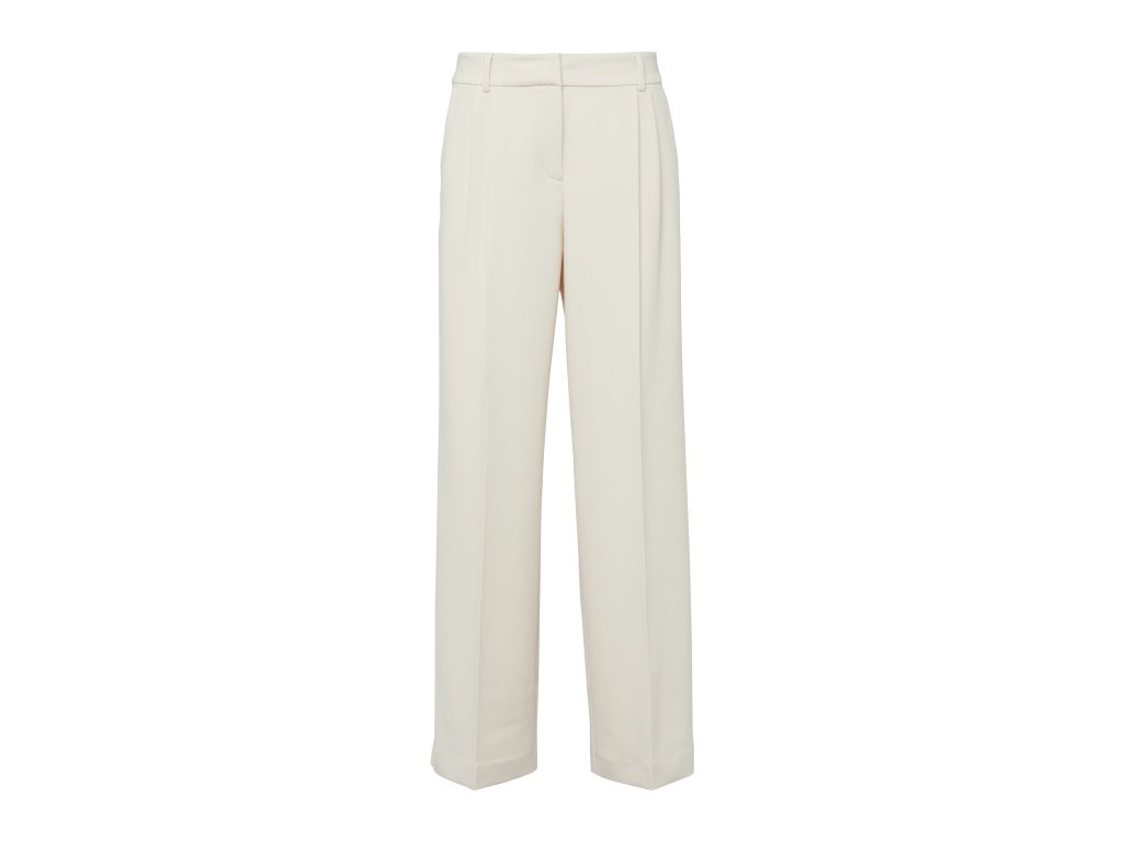 Elegantní kalhoty s rovnými nohavicemi jsou univerzálním kouskem pro moderní šatník. Vysoký pas a jemné záhyby na předním dílu vytvářejí lichotivou siluetu, zatímco rovný střih působí sofistikovaně a nadčasově. Hladký materiál zajišťuje pohodlí při celodenním nošení.