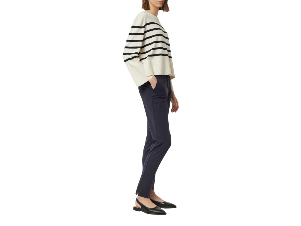 Pohodlný materiál dobře drží tvar a zajišťuje komfort při celodenním nošení. Kalhoty snadno zkombinujete se sakem, košilí i jemným topem – ideální volba do kanceláře i na formálnější příležitosti.