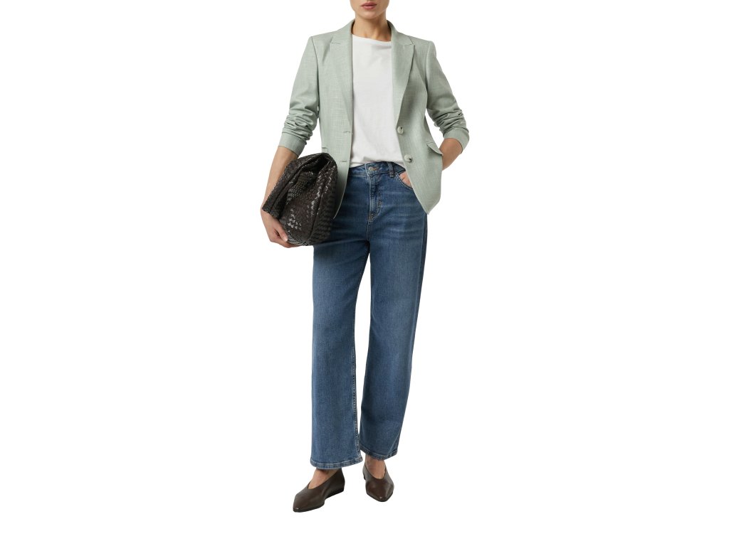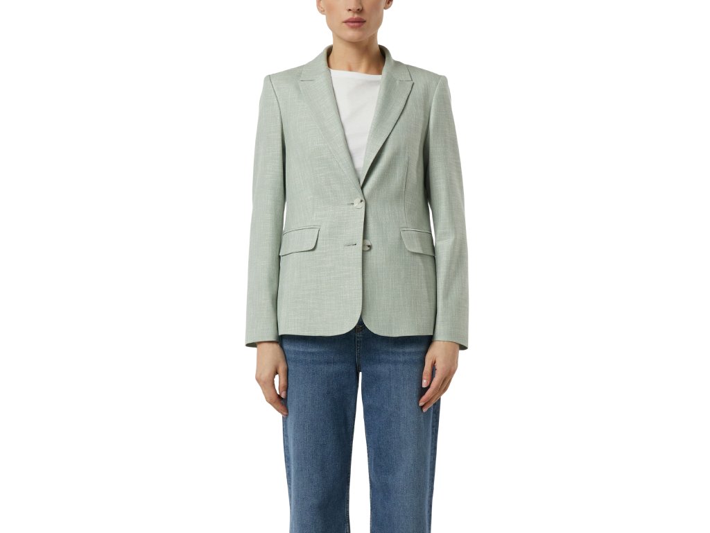 Dámské sako v jemném pastelovém odstínu je nadčasový kousek, který dodá outfitu lehkost a sofistikovanost. Klasický klopový límec, čistý střih a zapínání na knoflíky vytvářejí elegantní siluetu vhodnou do kanceláře i pro formálnější příležitosti. Jemně strukturovaný materiál působí lehce a komfortně, ideální pro jarní a letní styling.