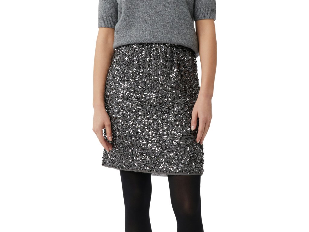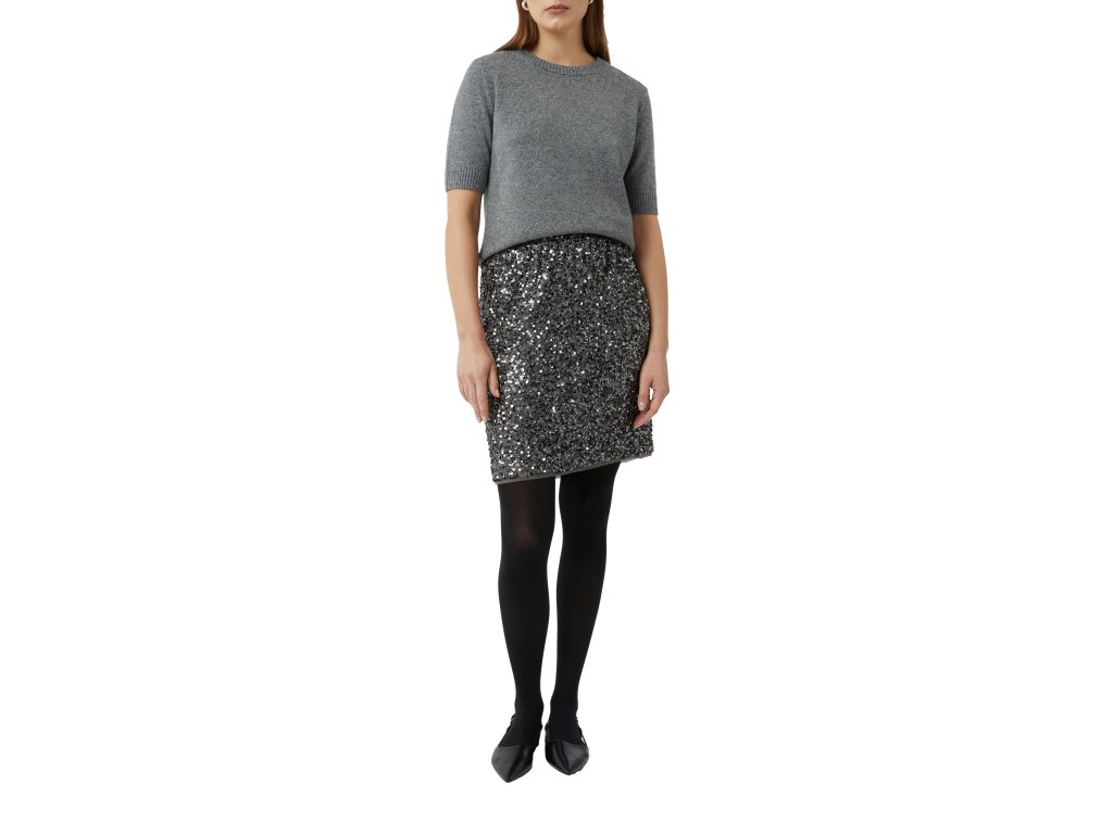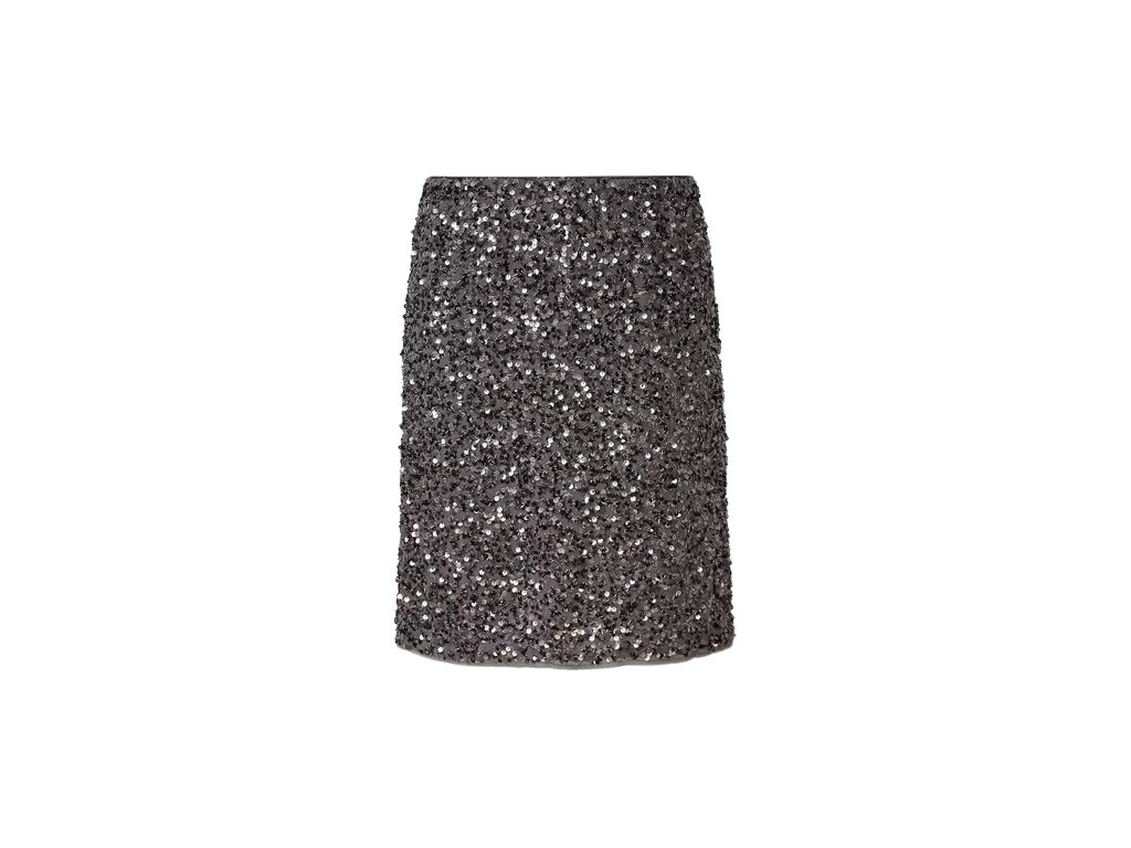 Stylová mini sukně, která rozzáří každý outfit. Celoplošně zdobená třpytivými flitry vytváří luxusní vzhled ideální pro večerní příležitosti nebo slavnostní události. Elastický pas zajišťuje pohodlí a perfektní padnutí. Skvěle se kombinuje s jednoduchým svetrem nebo elegantní halenkou.