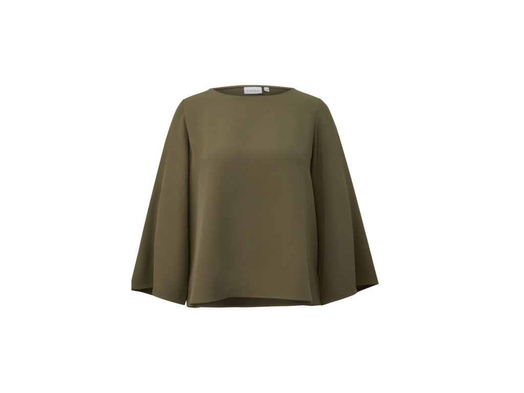 Elegantní halenka v minimalistickém střihu, která zaujme rozšířenými rukávy dodávajícími modelu lehkost a moderní siluetu. Čistý výstřih a splývavý materiál vytvářejí sofistikovaný vzhled a zároveň zajišťují maximální komfort při nošení.