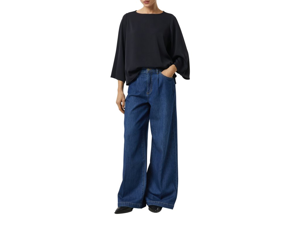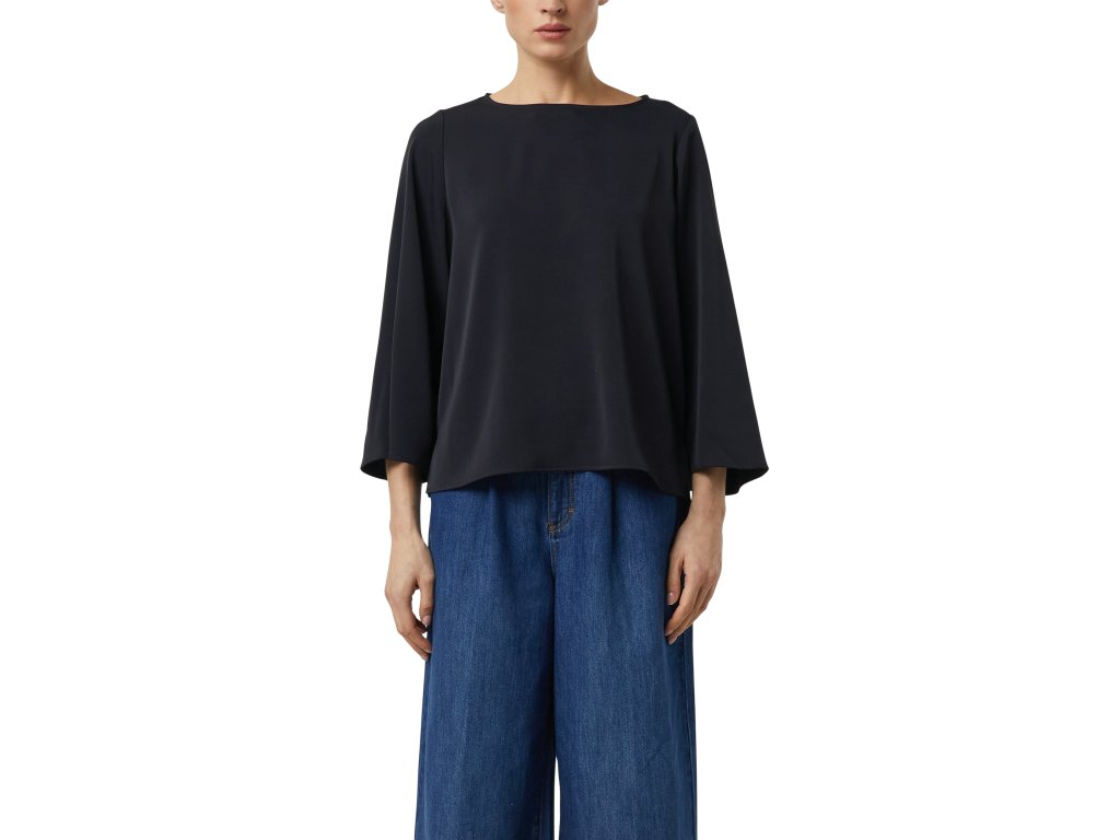 Elegantní halenka s volnými rukávy je nadčasový kousek, který vyniká jednoduchostí a splývavým materiálem. Rovný střih vytváří moderní siluetu a poskytuje maximální komfort při nošení. Široké rukávy dodávají modelu lehkost a jemný ženský výraz, zatímco čistý design umožňuje snadné kombinování s elegantními i ležérními kousky.