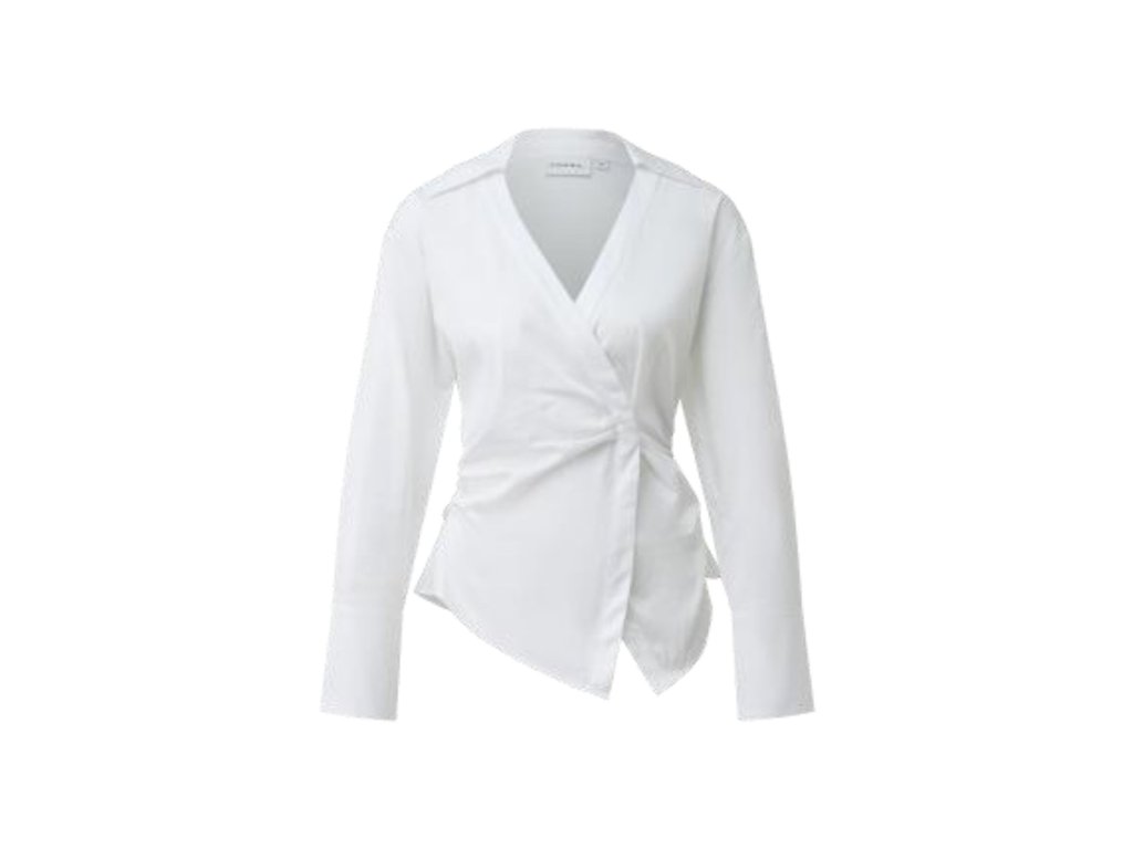 Stylová halenka s překládaným předním dílem vytváří jemně tvarující siluetu a působí velmi žensky. Výstřih do V lichotí postavě, zatímco dlouhé rukávy dodávají modelu elegantní a sofistikovaný charakter. Lehký, splývavý materiál zajišťuje příjemné nošení po celý den.