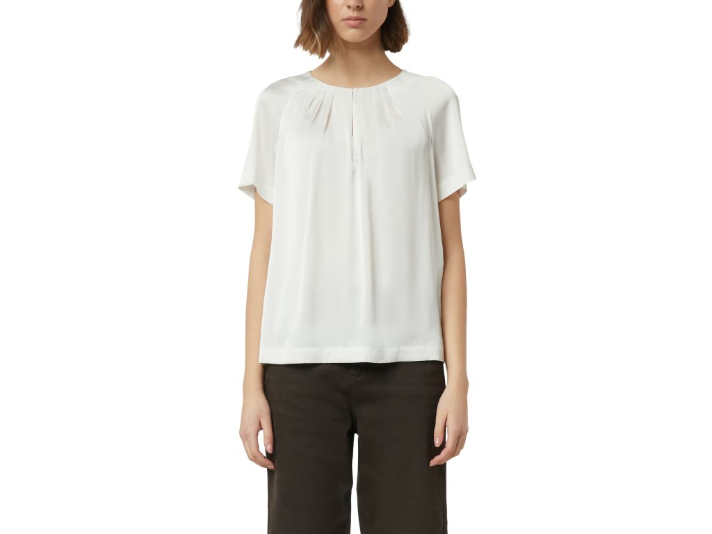 Halenka s jemným řasením u výstřihu působí lehce, žensky a nadčasově. Volnější střih zajišťuje pohodlí při nošení, zatímco jemné sklady u kulatého výstřihu dodávají modelu sofistikovaný detail. Krátké rukávy a splývavý materiál dělají z halenky ideální kousek pro každodenní nošení i formálnější příležitosti.