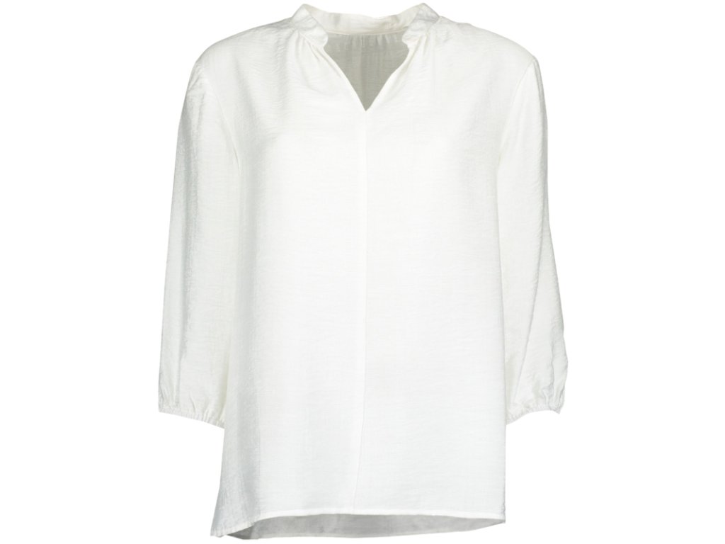 Lehká a vzdušná halenka v jednoduchém, nadčasovém designu. Volnější střih a příjemný materiál z viskózy s příměsí polyamidu zajišťují pohodlí a elegantní vzhled. Výstřih do „V“ s jemným řasením dodává ženský detail, který podtrhne váš outfit do práce i pro volný čas.