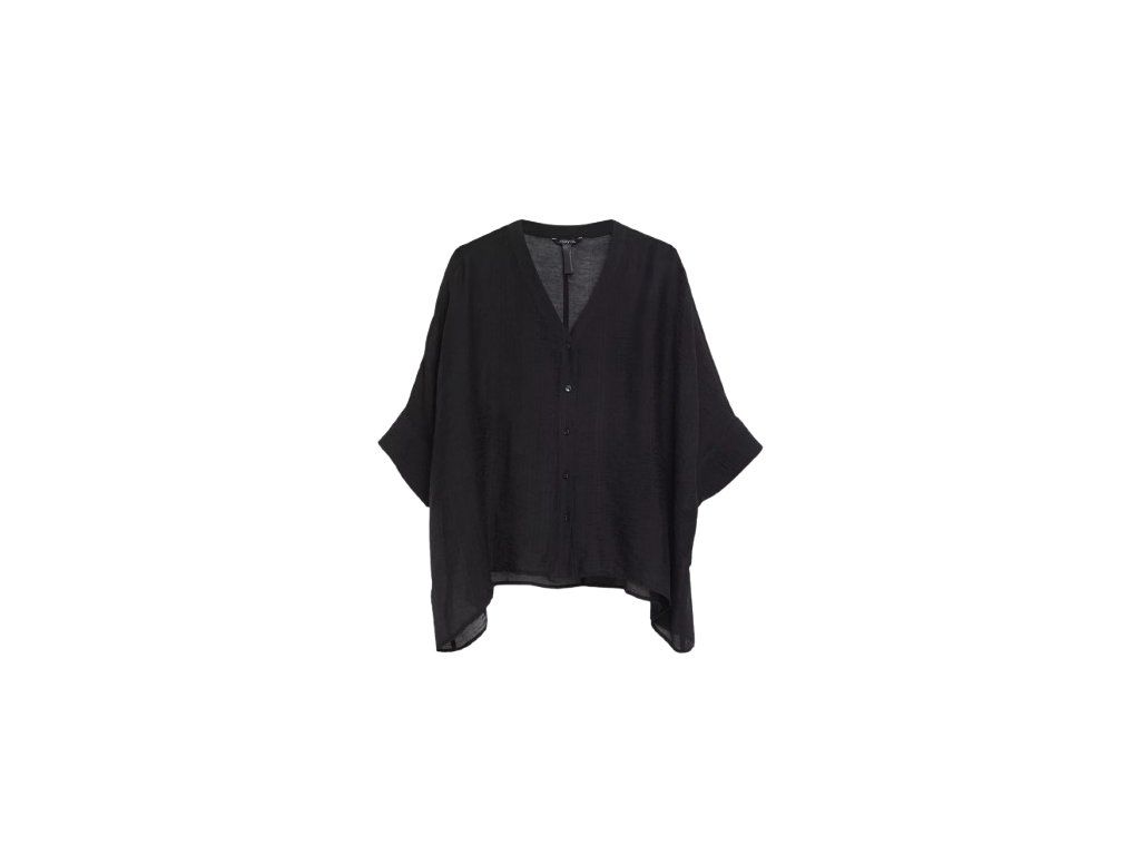 Halenka má hlubší véčkový výstřih a zapínání na knoflíky, které dodává modelu decentní ženský detail. Širší, kratší rukávy podtrhují uvolněný styl a zároveň poskytují dostatek volnosti pohybu.