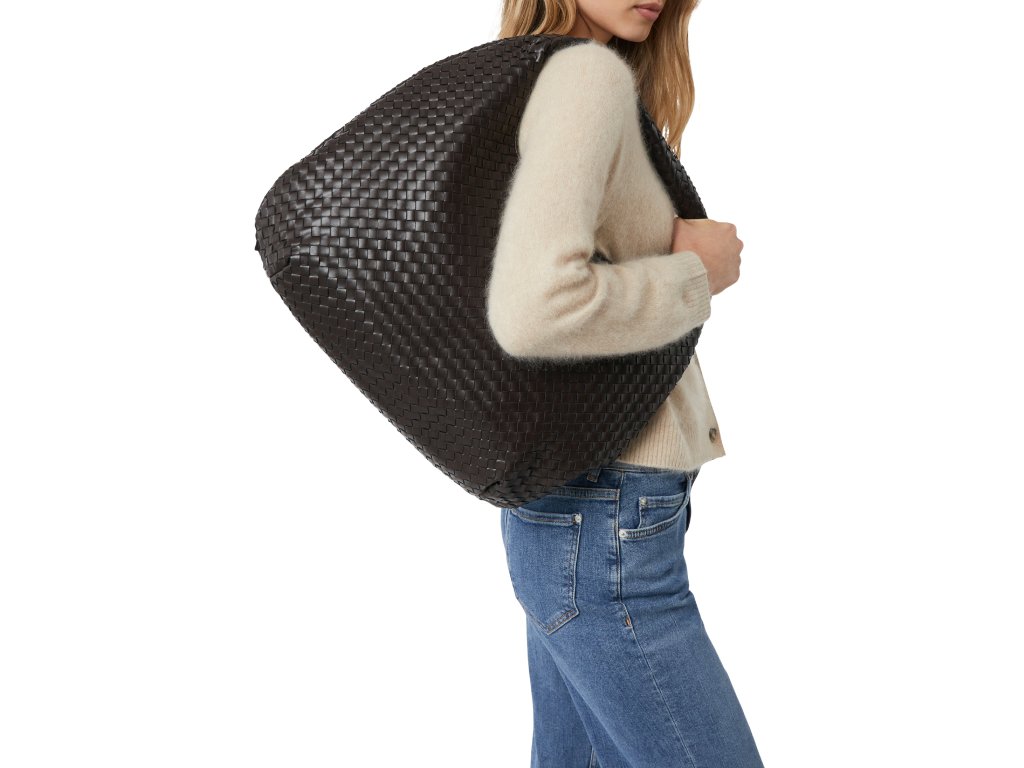 Moderní kabelka v elegantním tmavém odstínu s výrazným proplétaným designem. Díky krátkému uchu ji můžete pohodlně nosit přes rameno nebo v ruce. Prostorná kabelka poskytne dostatek místa pro všechny vaše nezbytnosti a nadčasový vzhled podtrhne každý outfit – od denního po večerní.