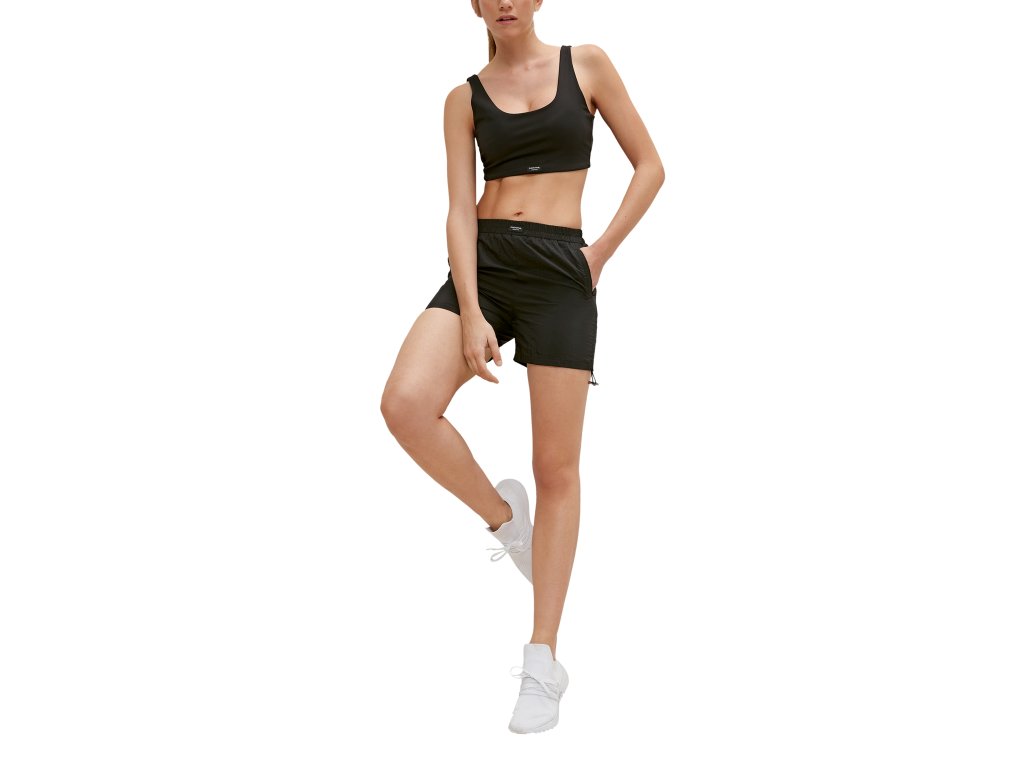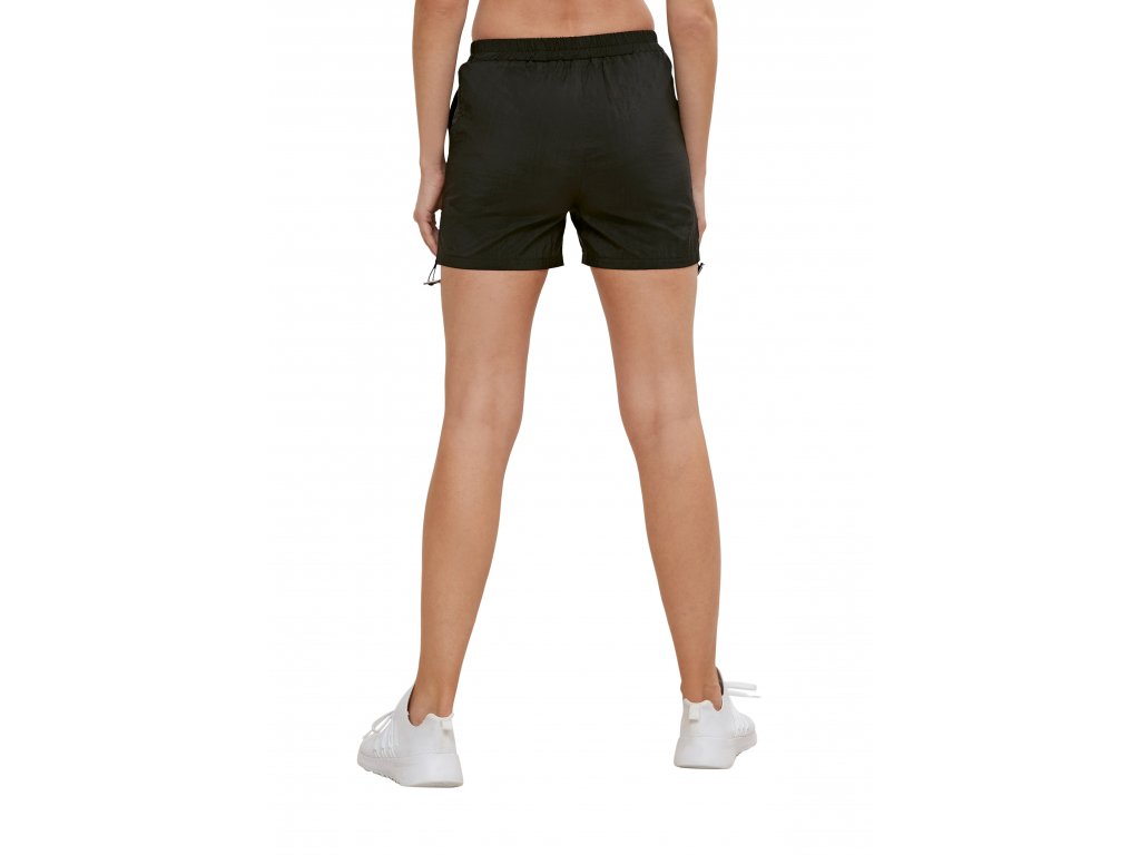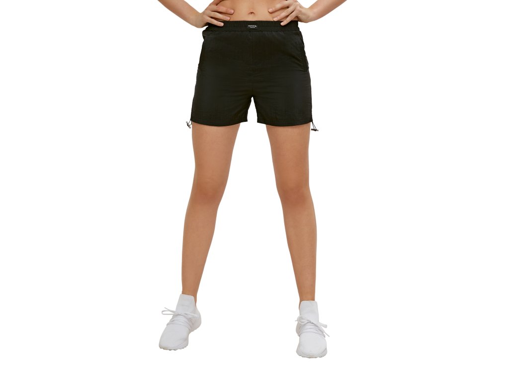 Buďte aktivní: Ultralehké šortky s pohodlným elastickým pasem a střihem, který obepíná tělo. Nastavitelné volánky na straně dodávají sportovnímu stylu ženský nádech.