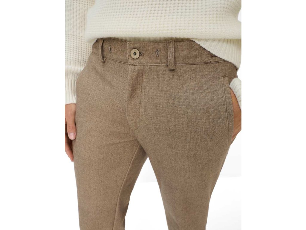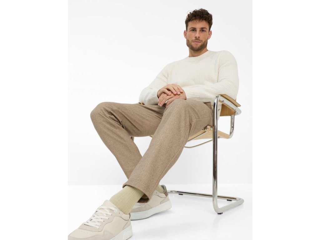 Elegantní kalhoty v moderním střihu, které snadno zkombinujete jak s košilí do kanceláře, tak se svetrem pro volný čas. Jemná struktura materiálu dodává kalhotám nadčasový vzhled a příjemný komfort při nošení. Díky směsi přírodních a funkčních vláken jsou lehké, pohodlné a zároveň odolné.
