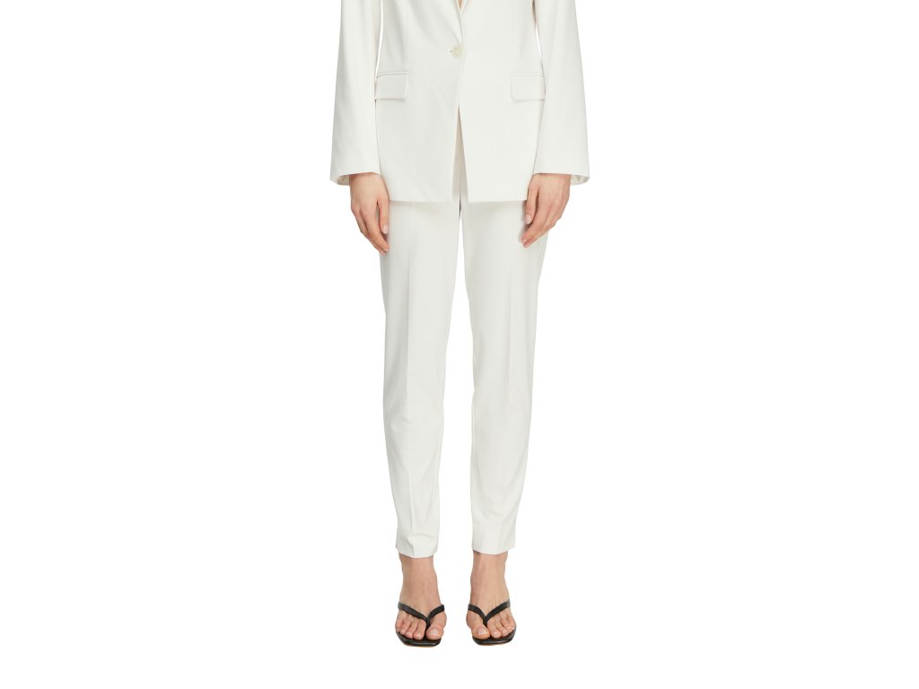 Elegantní dámské kalhoty v jemném krémovém odstínu jsou ideální volbou pro elegantní i business outfit. Díky čistému střihu a preciznímu zpracování skvěle padnou a opticky prodlužují siluetu. Kalhoty se snadno kombinují s košilí, sakem i ležérnějším topem a hodí se jak do práce, tak na společenské události.