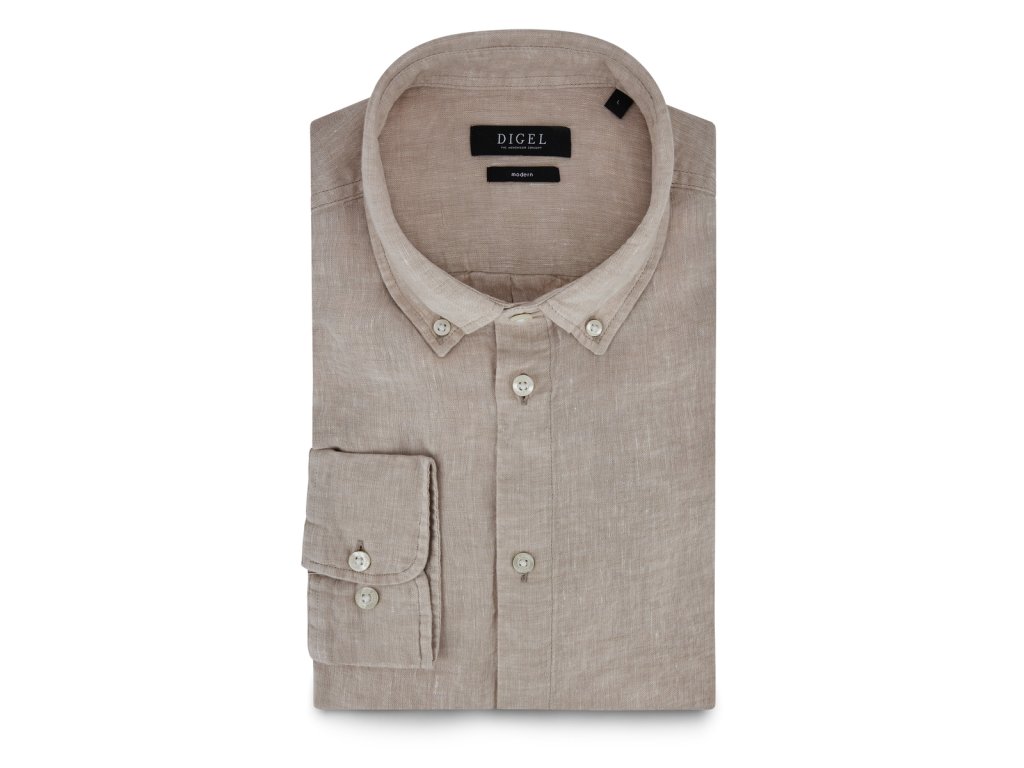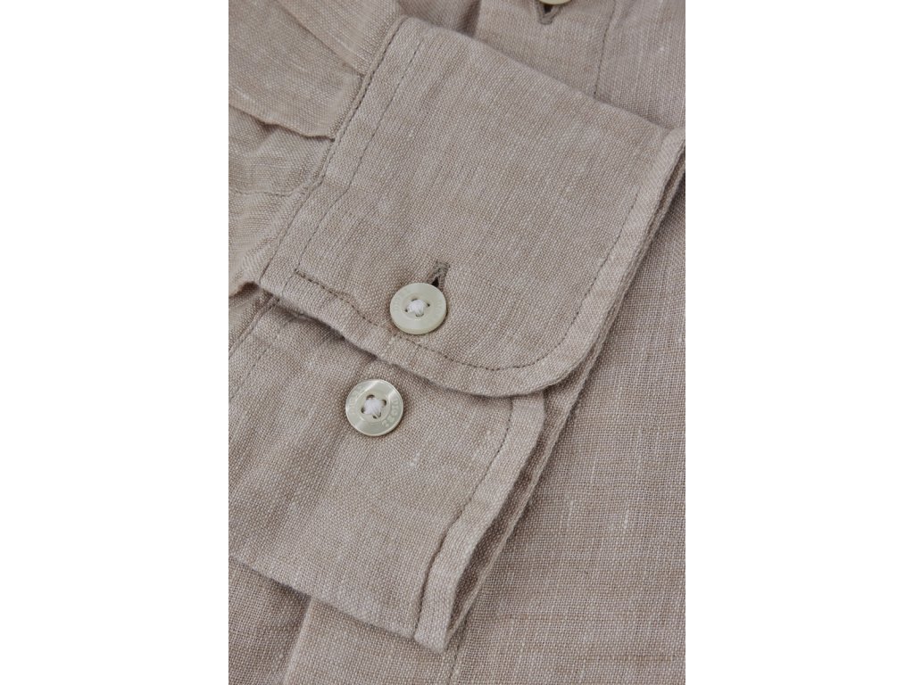 Objevte pohodlí a nadčasovou eleganci s touto pánskou lněnou košilí v béžovém odstínu. Vyrobena z prémiového 100% lnu, nabízí výjimečnou prodyšnost a lehkost, díky čemuž je ideální volbou pro teplé letní dny i cestování. Klasický střih s límečkem na knoflíky a dlouhým rukávem působí elegantně a zároveň uvolněně – snadno ji zkombinujete s chinos kalhotami, džínami nebo šortkami.