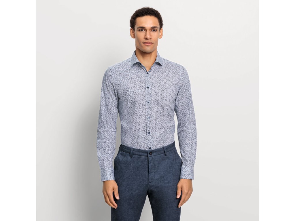 Tato nově vyvinutá produktová řada zaujme svými inovativními high-tech přízemi, které se kromě našich známých elastických a snadno žehlitelných vlastností materiálu mohou pochlubit technologií regulace vlhkosti a teploty. Tento stylový model s hravým designem zprostředkovává business-ready eleganci a je zvýrazněn stylovým límcem. Všestranný inovativní společník.