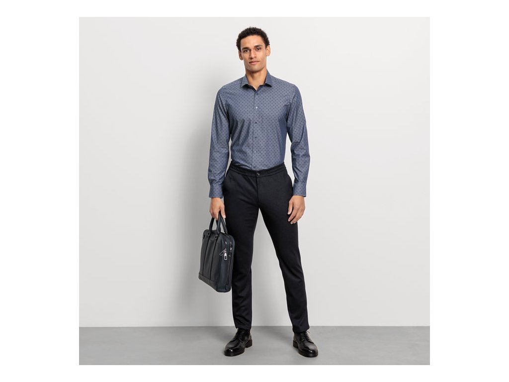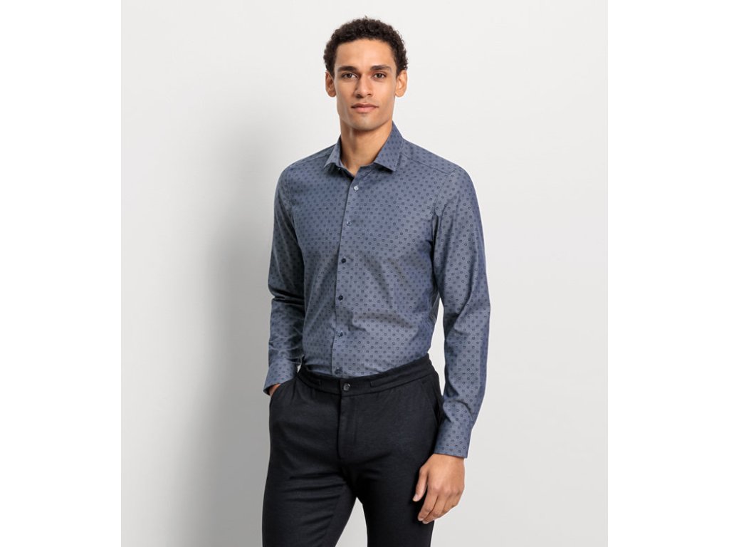 Elegantní business košile s vysoce kvalitním potiskem v námořnické barvě. Atraktivní linie střihu na tělo dělá z tohoto OLYMP Level Five perfektní volbu pro sportovní, štíhlé muže. Jemný komfortní streč vyrobený z bavlny s elastolefinem nabízí stylovou, šetrnou k pokožce a snadno se žehlící košili. Doplněno límcem Modern Kent.