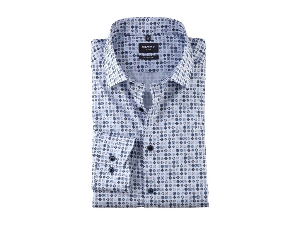 Chtěli byste módní osvěžení na jaro? Pak business košilí OLYMP Luxor s kreativním vzorem nešlápnete vedle. Detaily zvýrazňují moderní pojetí košile. Příjemně chladivá textura slibuje pohodlí při nošení a časově nenáročnou péči. Atraktivní přiléhavý střih.