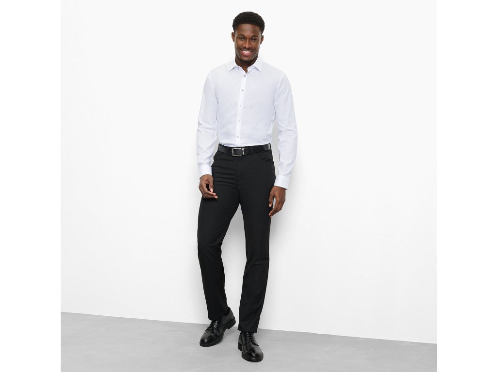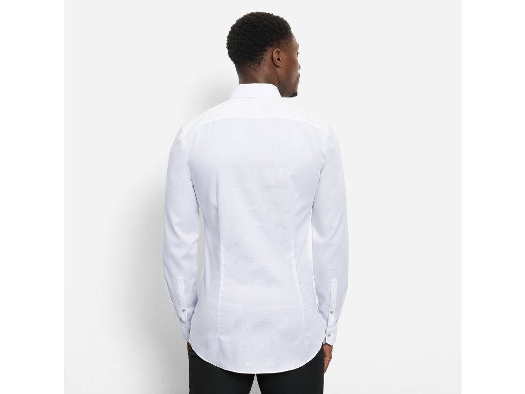 Elegantní košile OLYMP No. Six super slim upoutá pozornost. Příjemná na pokožce, pružná bavlna, zúžený tvar a elegantní límeček Kent spolu dokonale ladí. Snadná údržba a snadné žehlení. Šířka pasu 92 cm u velikosti 39/40.