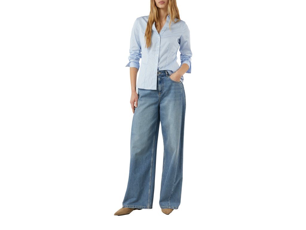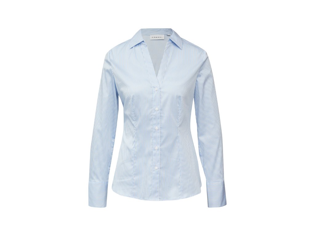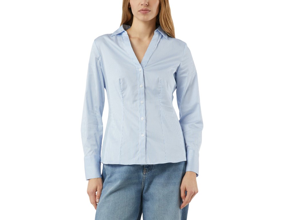 Klasická dámská košile v jemném proužkovaném provedení, která spojuje nadčasovou eleganci s ženskou siluetou. Projmutý střih krásně zvýrazňuje postavu, zatímco klasický límeček a zapínání na knoflíky dodávají košili čistý, profesionální vzhled. Ideální volba do kanceláře i pro elegantní každodenní styling.