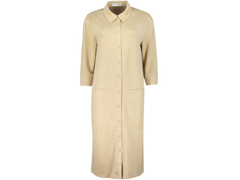Elegantní košilové šaty v jemném béžovém odstínu představují nadčasový kousek, který spojuje pohodlí s minimalistickou elegancí. Jednoduchý design s čistými liniemi působí sofistikovaně a snadno se přizpůsobí různým příležitostem.