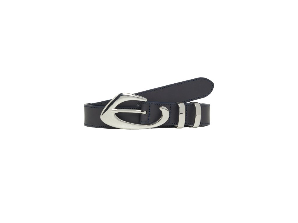 Elegantní dámský pásek v tmavě modrém odstínu je stylovým doplňkem, který podtrhne každý outfit. Minimalistický design doplňuje výrazná kovová spona ve stříbrném tónu s moderním, zaobleným tvarem, jež dodává pásku sofistikovaný akcent.