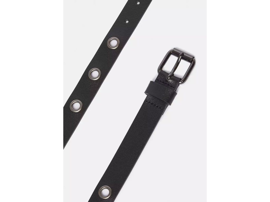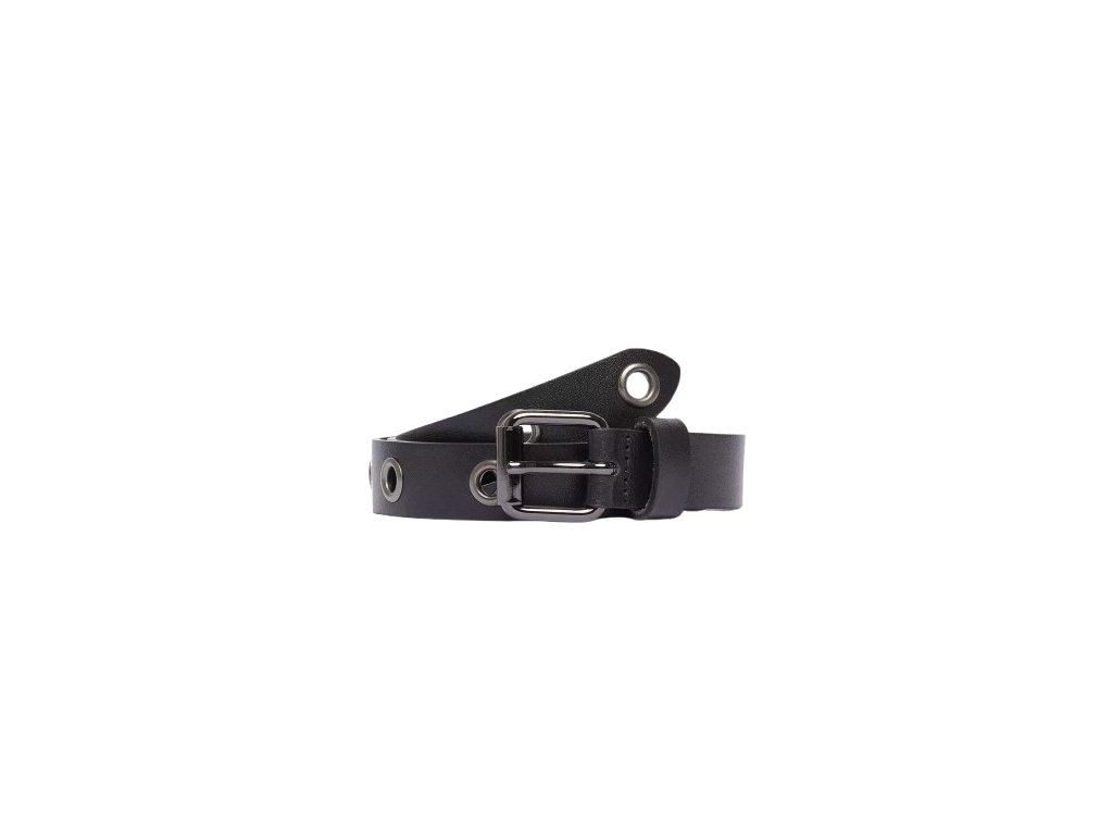Stylový černý pásek z 100% pravé kůže s výraznými kovovými detaily. Moderní design s velkými průchodkami a kovovou přezkou dodá každému outfitu ležérně-elegantní vzhled. Skvěle se hodí k džínám i šatům – ideální doplněk pro každodenní nošení.