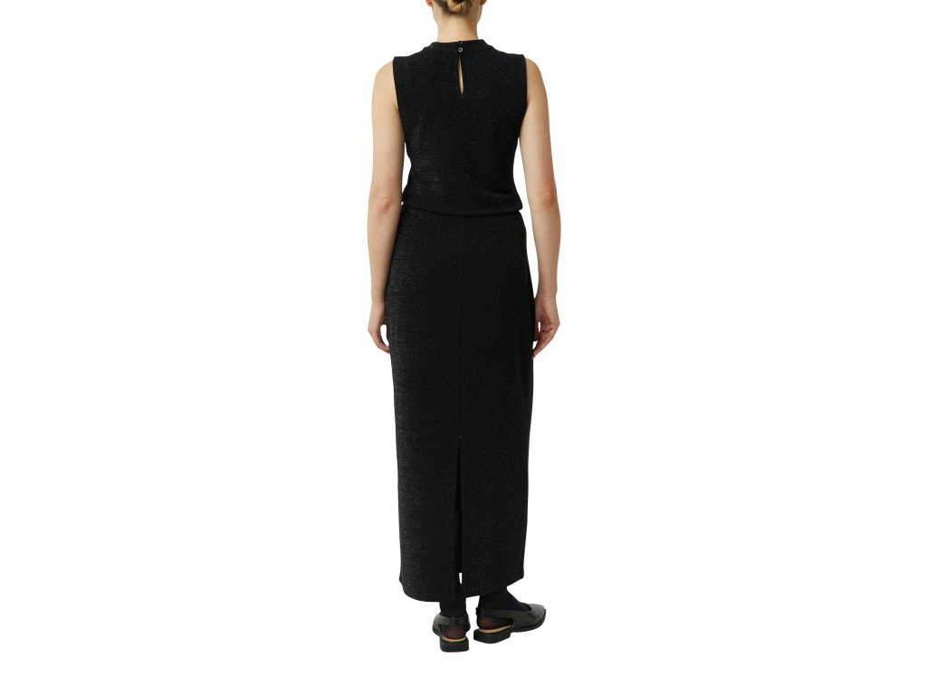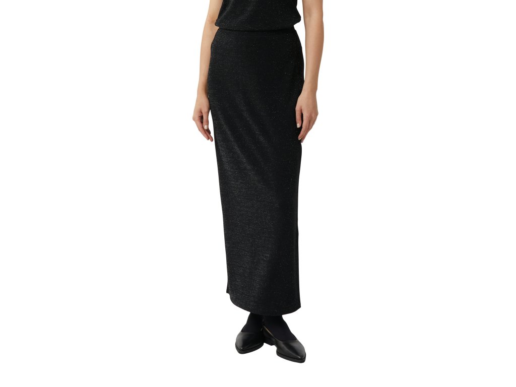 Elegantní černá sukně s jemným leskem dodá vašemu outfitu sofistikovaný a ženský vzhled. Úzký střih krásně zvýrazní siluetu, zatímco pružný úplet zajistí maximální pohodlí při nošení. Perfektní v kombinaci s ladícím topem pro večerní nebo slavnostní look.
