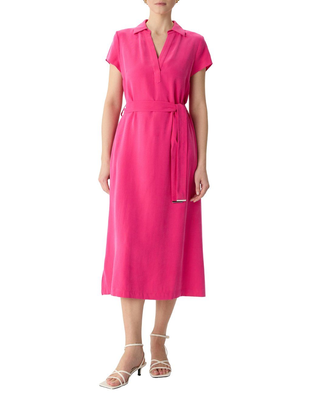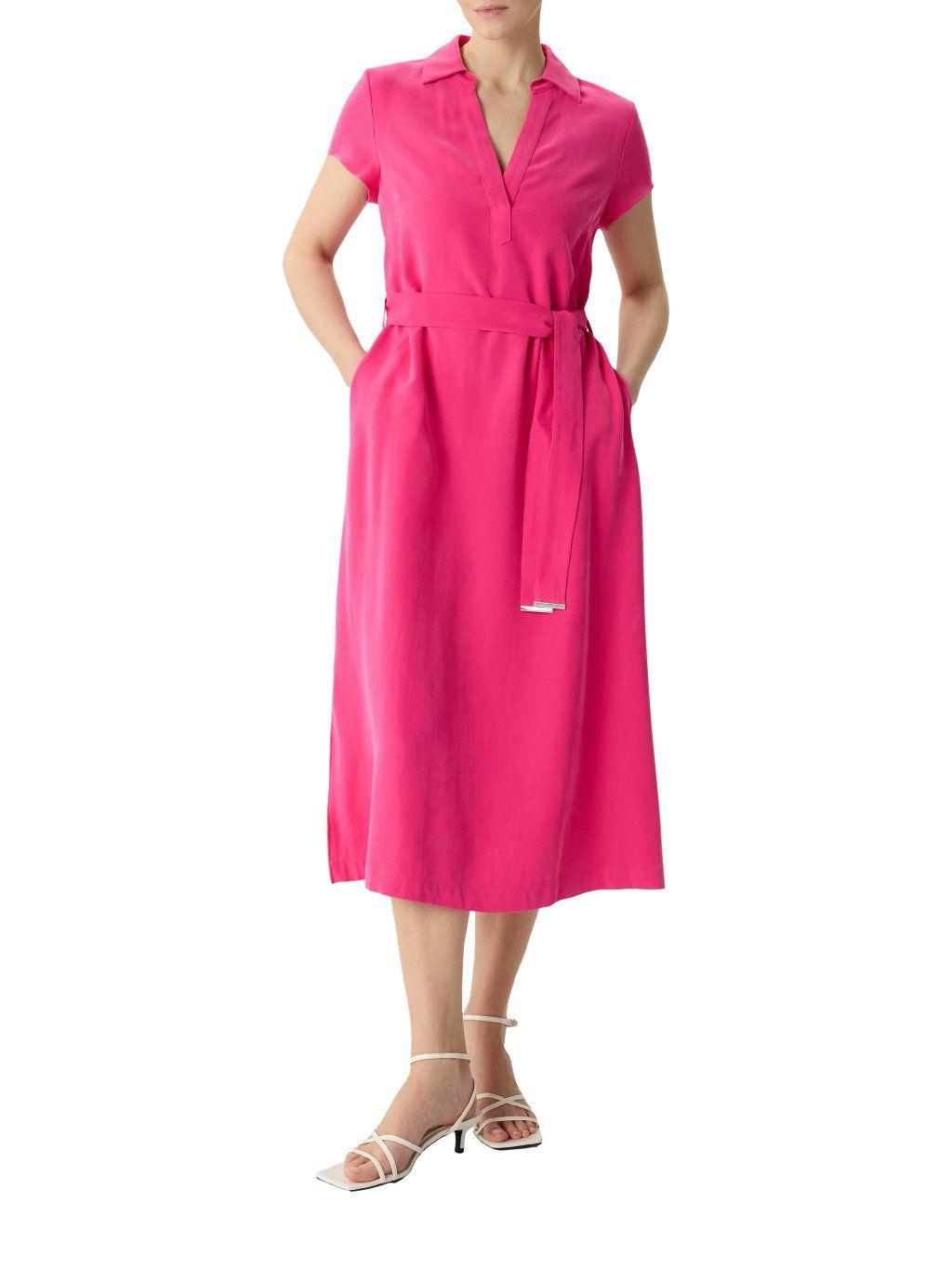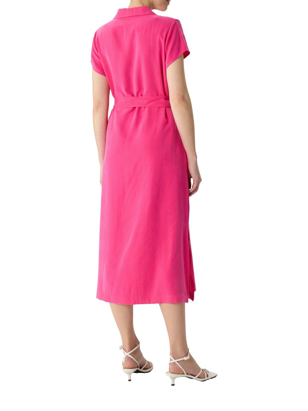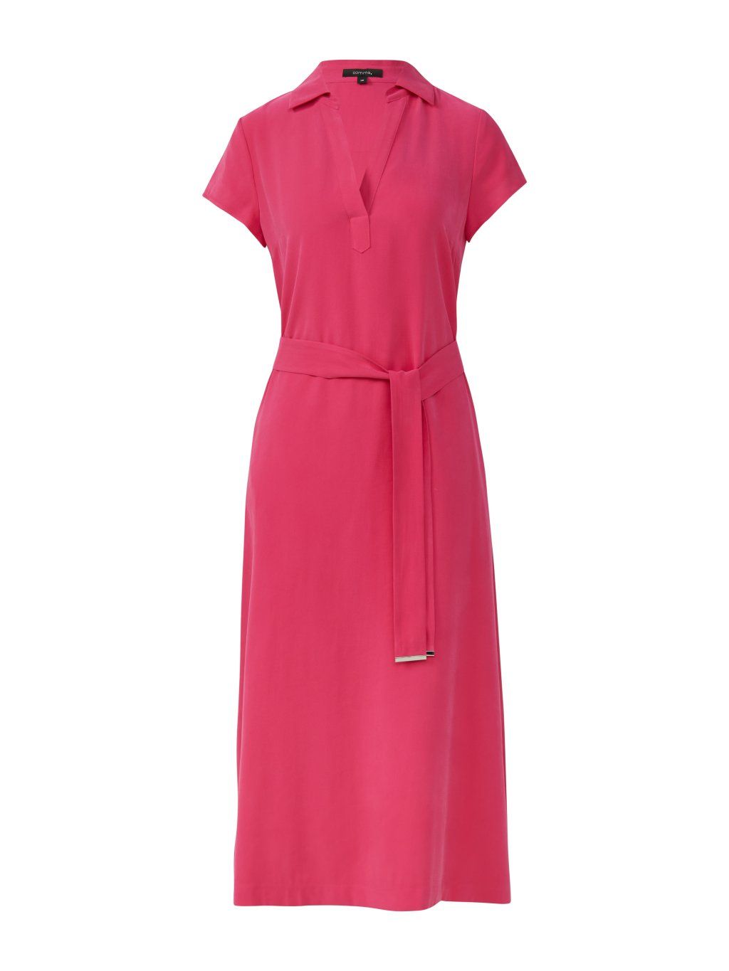 Dámské šaty značky Comma v zářivém růžovém odstínu jsou výrazným a zároveň elegantním kouskem, který okamžitě upoutá pozornost. Lehký, splývavý materiál dodává šatům jemný lesk a zajišťuje pohodlí při nošení po celý den.