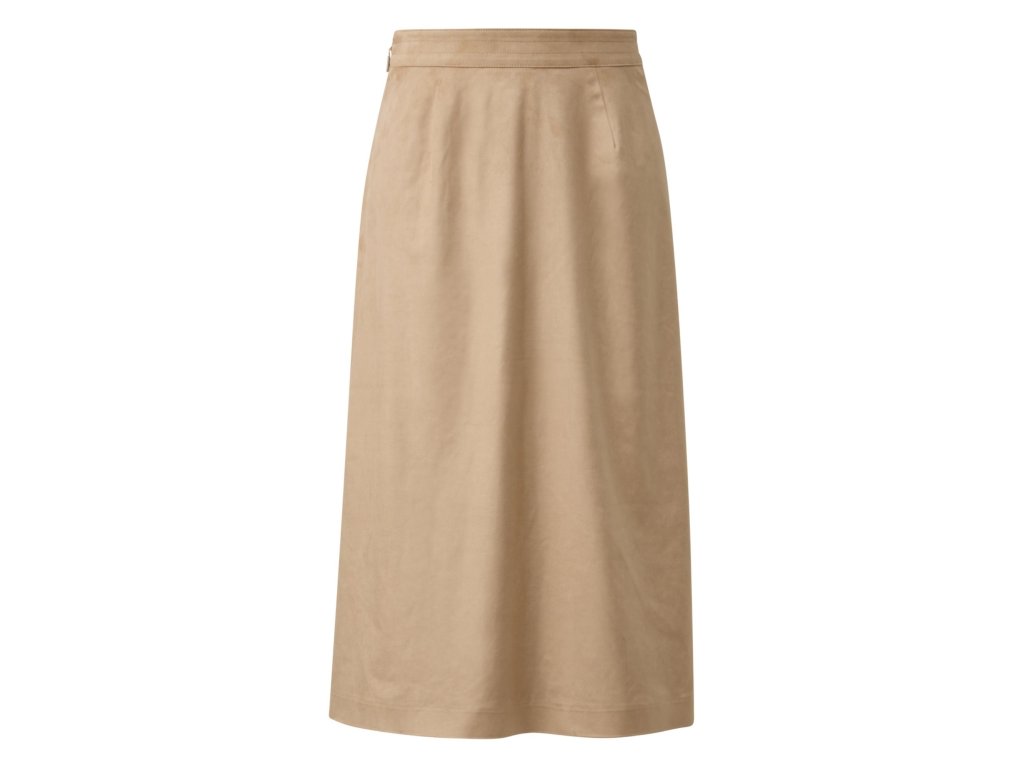 Elegantní midi sukně s jemným semišovým povrchem, který dodává modelu sofistikovaný a luxusní charakter. Čistý střih s lehce rozšířenou siluetou krásně splývá s postavou a vytváří ženský, vyvážený vzhled. Hladký pas zajišťuje pohodlné nošení a čistou linii.