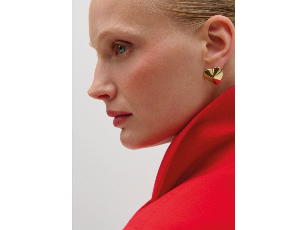 Minimalistické náušnice ve tvaru srdce jsou jemným, ale výrazným doplňkem, který dodá outfitu ženskost a eleganci. Lesklý zlatý povrch působí luxusně a nadčasově, díky čemuž se náušnice snadno kombinují s každodenními i společenskými looky. Plastický tvar vytváří zajímavý světelný efekt a podtrhuje moderní design.