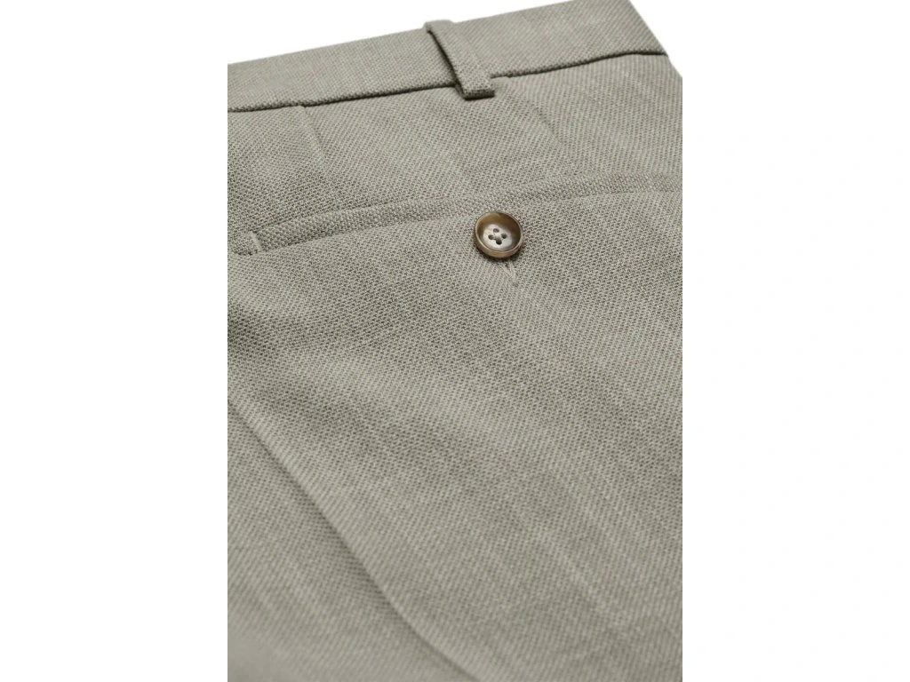 Moderní střih s předními puky opticky prodlužuje postavu a podtrhuje elegantní siluetu. Kalhoty jsou vybaveny klasickým zapínáním na zip a knoflík, nechybí ani poutka na pásek pro snadné kombinování s doplňky. Skvěle se hodí jak k saku a košili, tak i k ležérnějším outfitům.