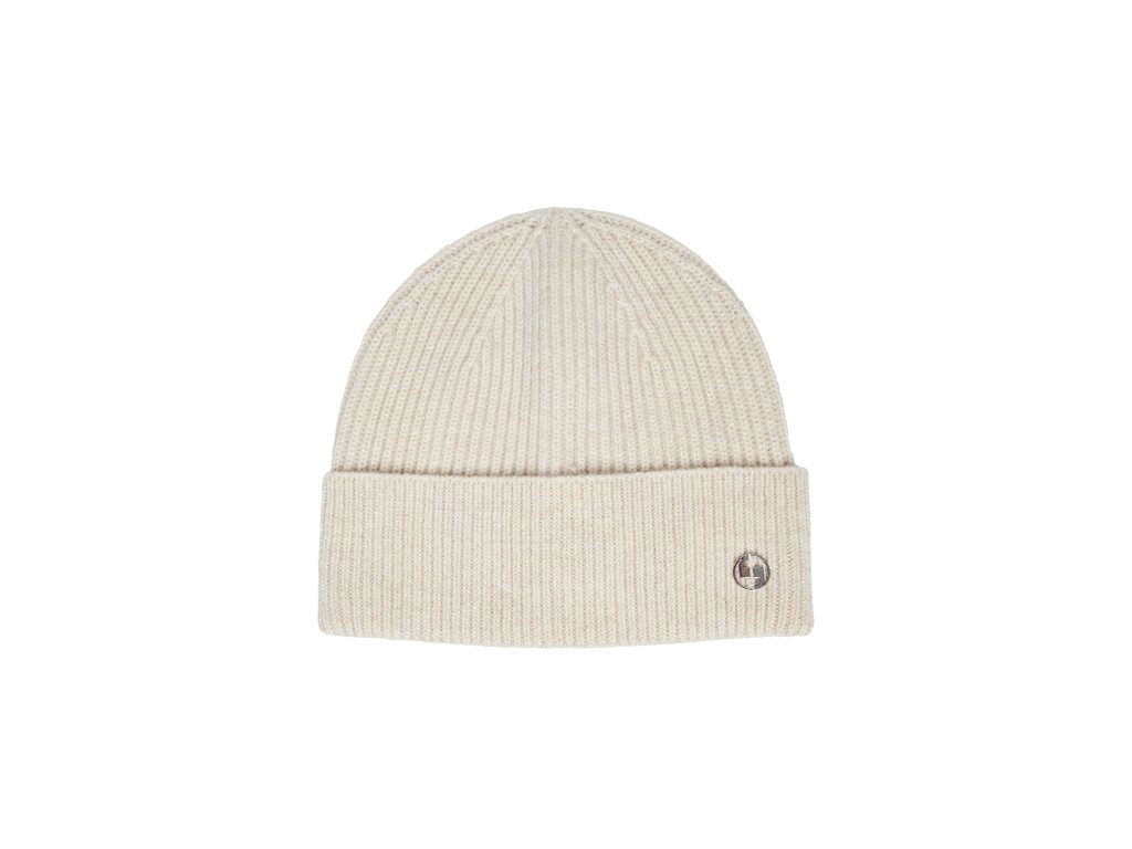 Nadčasová béžová čepice z měkkého žebrovaného úpletu je ideální volbou do chladného počasí. Ohrnutý lem zajistí pohodlí i extra hřejivost a decentní kovové logo na boku dodává elegantní detail. Díky minimalistickému designu se snadno kombinuje s kabátem, bundou i pletenými doplňky.