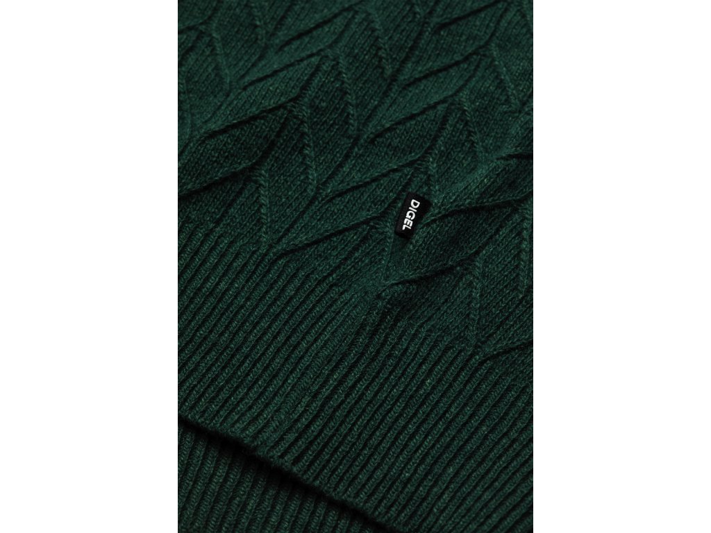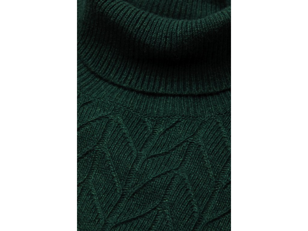 Stylový tmavě zelený rolák s jemným vzorem, vyrobený z kvalitní směsi vlny, viskózy a polyamidu. Poskytuje vysoký komfort, hřejivost a příjemný pocit při nošení. Ideální volba pro chladné dny i elegantní kombinace.