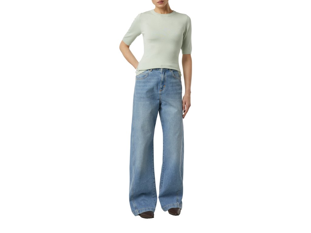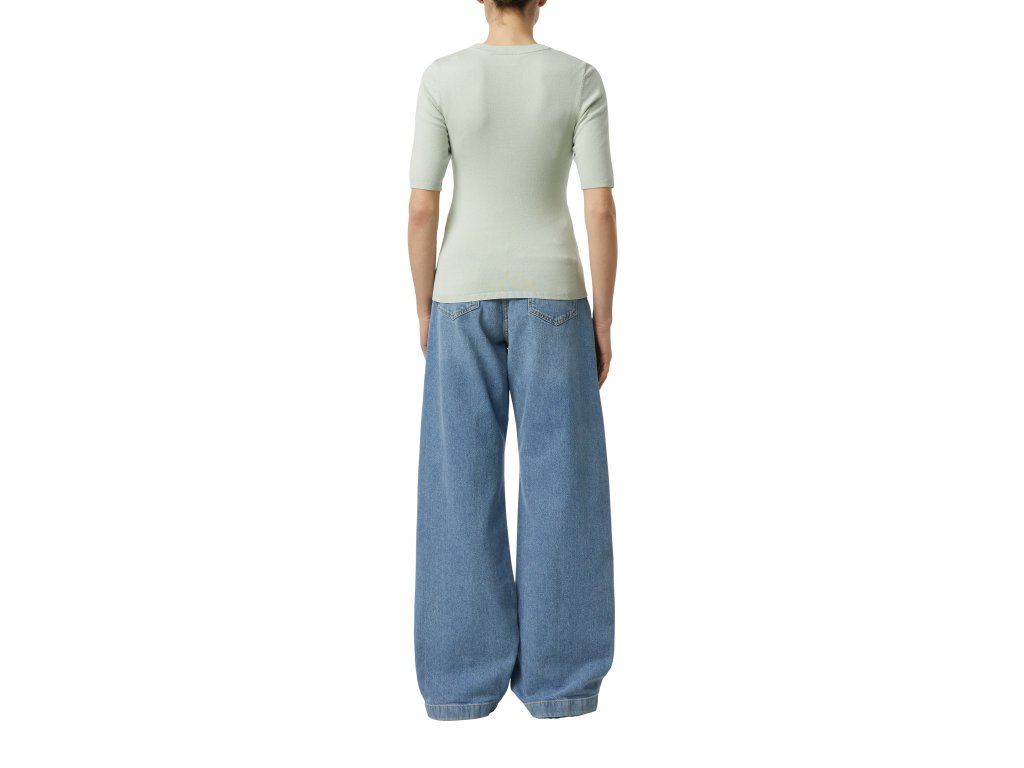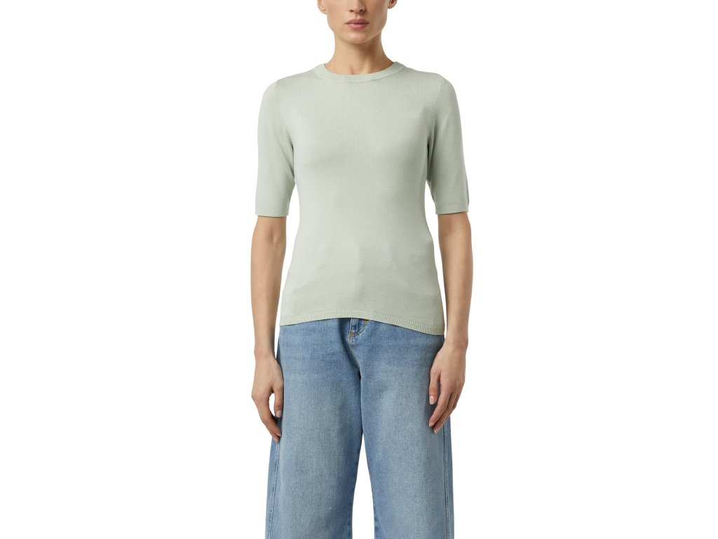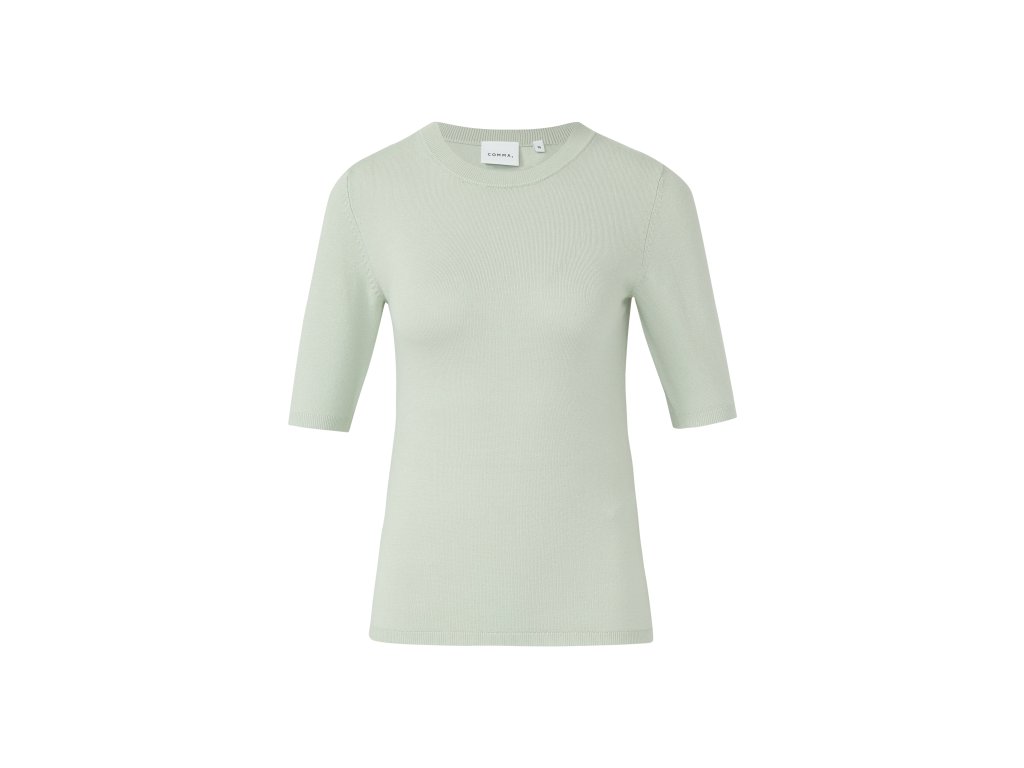 Top má přiléhavý střih, krátké rukávy a čistý lem, který podtrhuje moderní siluetu. Svěží pastelový odstín dodá outfitu lehkost a ženskost a skvěle se hodí jak do kanceláře, tak pro volnočasové kombinace.