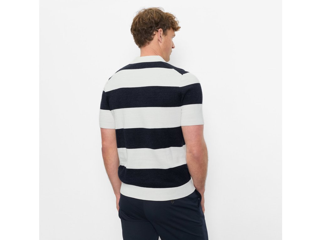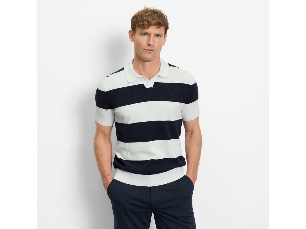 Stylové pletené polo tričko v nadčasovém pruhovaném designu přináší ideální rovnováhu mezi elegancí a ležérností. Jemná struktura pleteniny působí sofistikovaně a zároveň zajišťuje příjemný komfort při nošení. Klasický polo límec dodává modelu upravený vzhled, díky kterému se skvěle hodí jak k chinos kalhotám, tak k elegantním kraťasům.