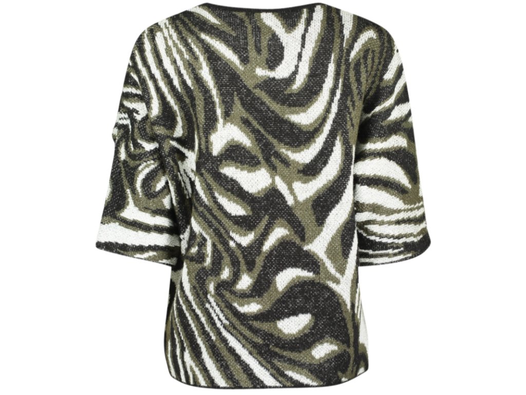 Stylový top s abstraktním vzorem v přírodních tónech dodá outfitu osobitý charakter. Volnější střih a kratší rukávy zajišťují pohodlí při nošení a zároveň působí moderně a uvolněně. Strukturovaný materiál vytváří zajímavý vizuální efekt a dělá z tohoto kousku ideální volbu jak pro každodenní nošení, tak pro elegantně-ležérní kombinace.