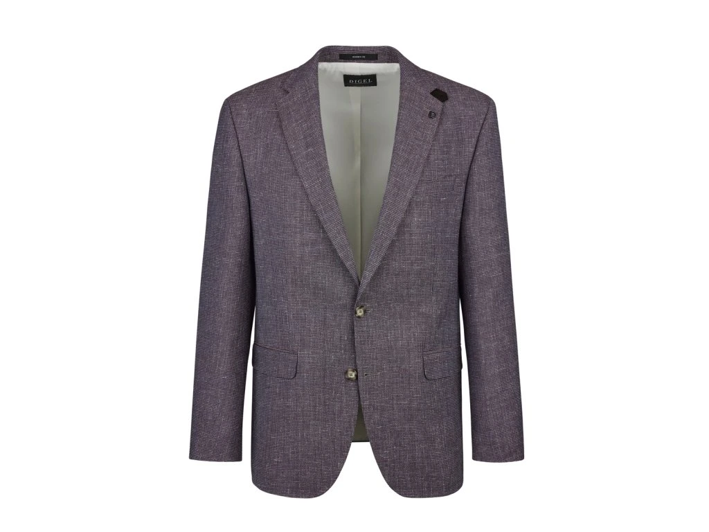 Stylové pánské sako značky DIGEL v originálním vínovo-fialovém odstínu zaujme na první pohled svou jemnou strukturou a moderním vzhledem. Odlehčené provedení zajišťuje vysoký komfort při nošení, zatímco precizní střih podtrhuje siluetu postavy. Ideální volba pro společenské události i elegantní smart casual outfit.