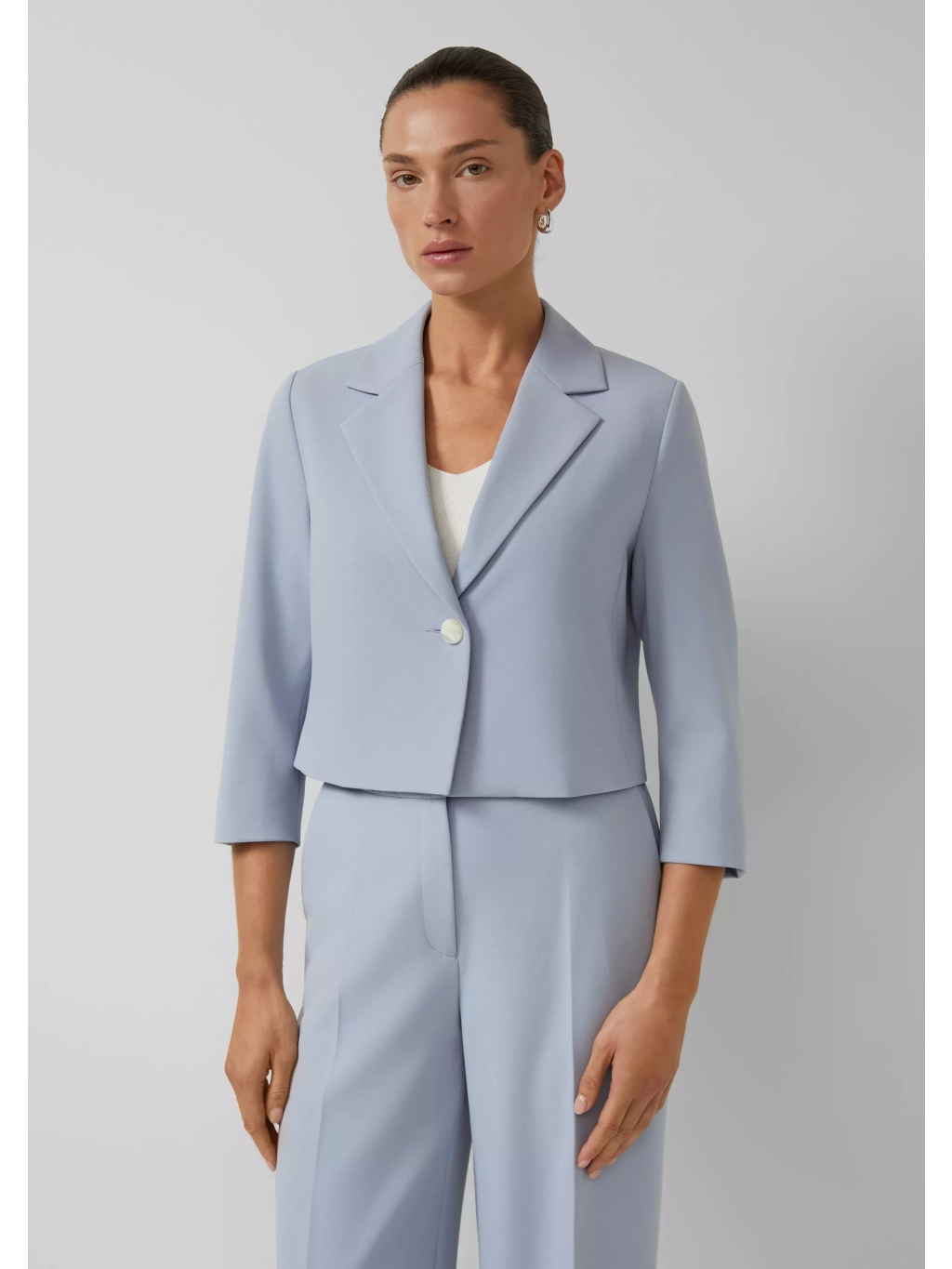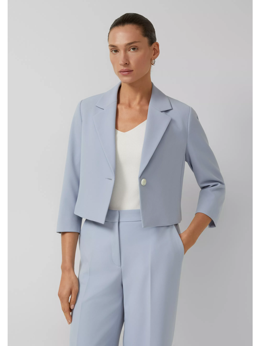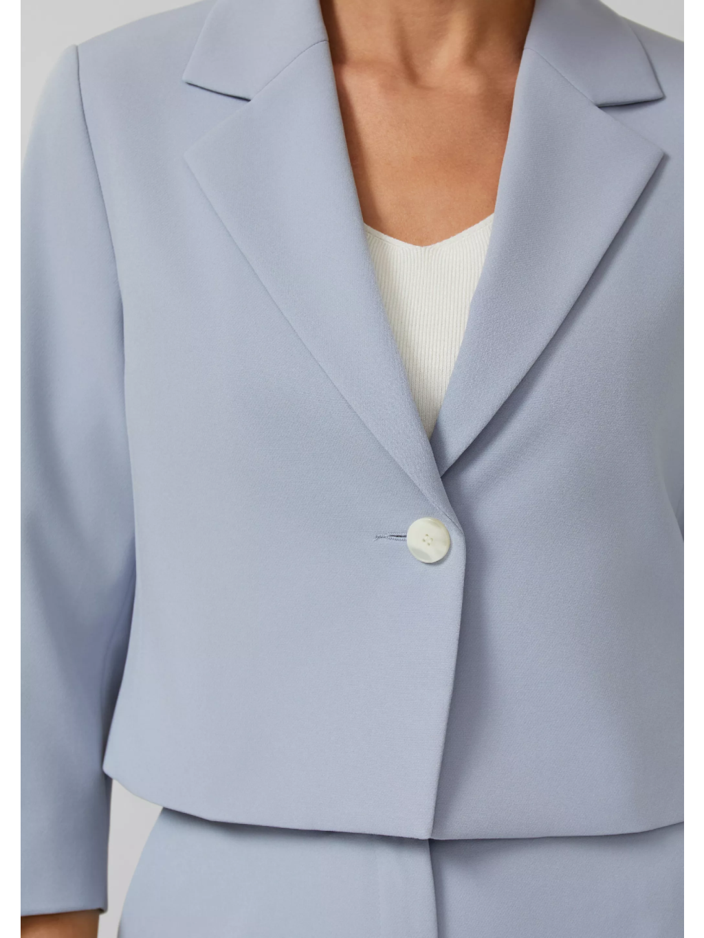 Dámské sako v jemném světle modrém odstínu je elegantním a zároveň moderním kouskem, který skvěle doplní formální i smart casual outfit. Kratší střih působí svěže a zvýrazňuje siluetu, díky čemuž se ideálně kombinuje se šaty, sukní i kalhotami s vyšším pasem.