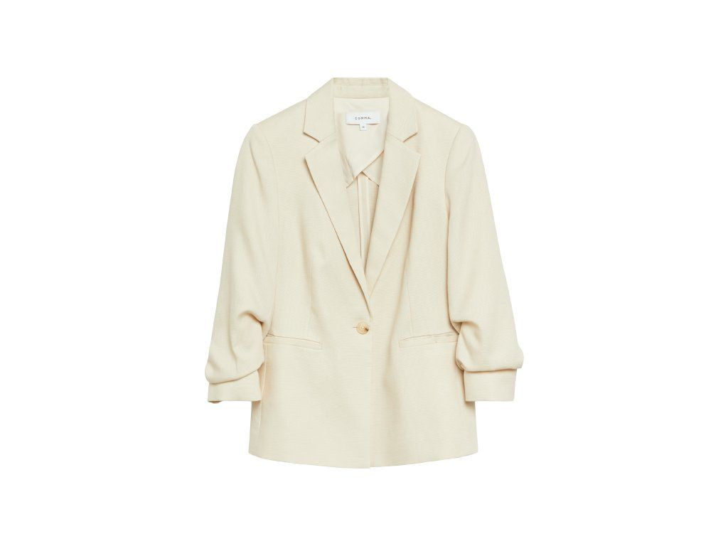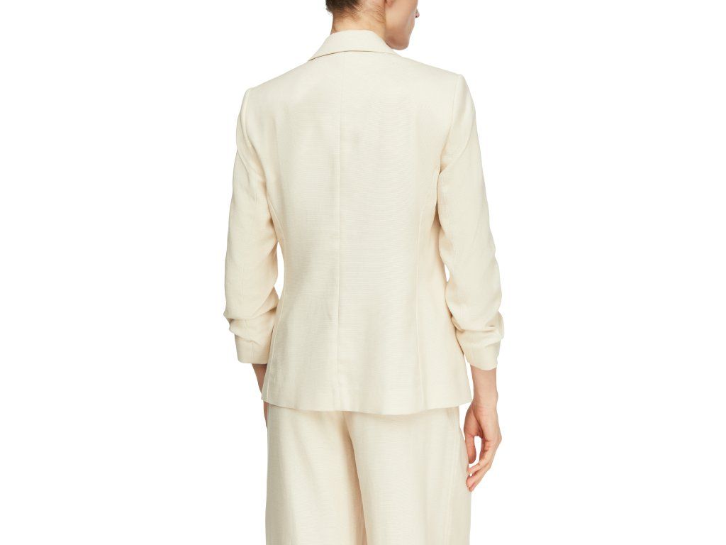 Tříčtvrteční rukávy s jemným řasením působí moderně a uvolněně, díky čemuž je sako ideální nejen do práce, ale i pro stylové volnočasové outfity. Lehký, příjemný materiál zajišťuje komfort při nošení po celý den.