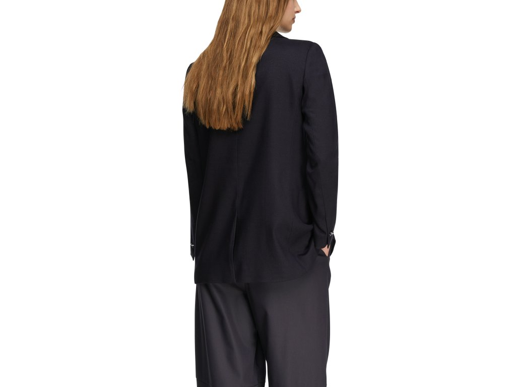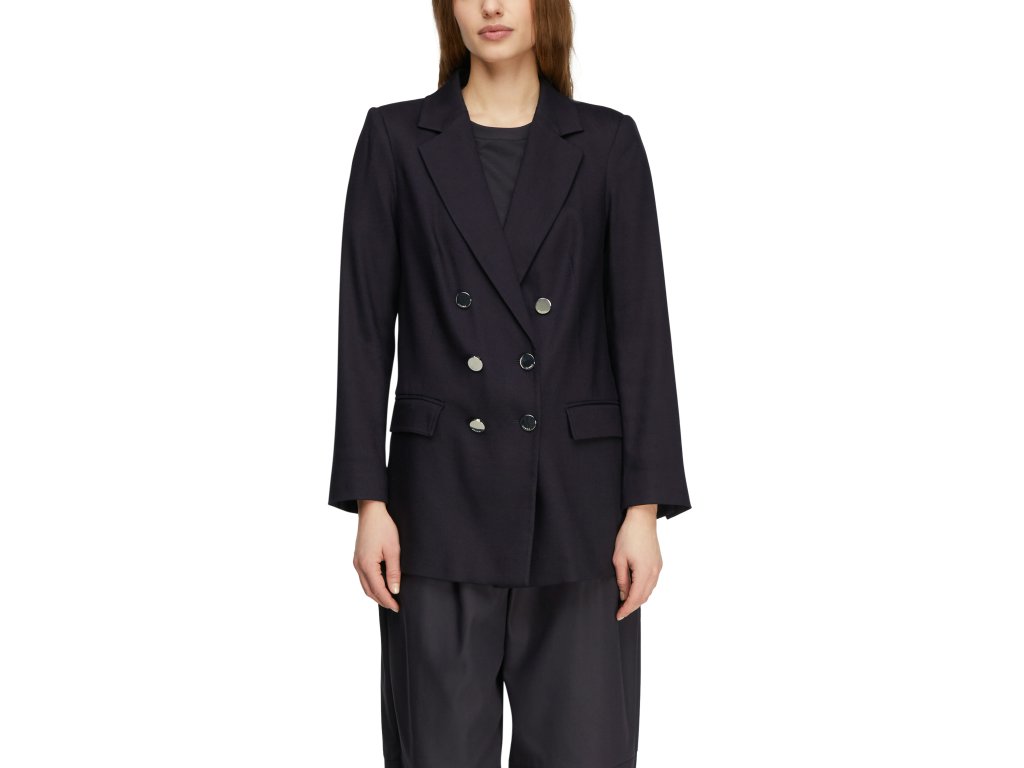 Elegantní dámské sako v tmavém odstínu je nadčasovým kouskem, který dodá outfitu sofistikovaný a profesionální vzhled. Dvouřadé zapínání s výraznými knoflíky podtrhuje klasický styl, zatímco kvalitní zpracování a precizní střih zajišťují perfektní padnutí. Ideální volba pro business outfit i elegantní každodenní kombinace.