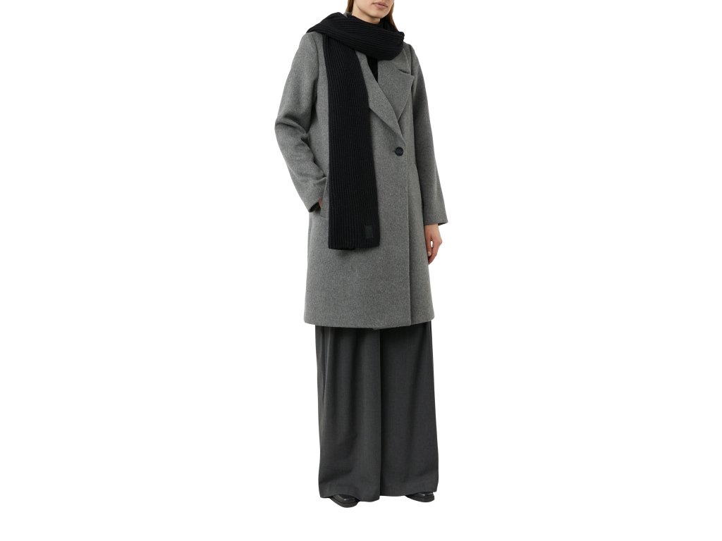 Elegantní černá šála z měkkého žebrovaného úpletu je univerzálním doplňkem do chladného počasí. Jednoduchý design s decentním logem na konci se snadno kombinuje s kabátem i bundou a dodá outfitu nadčasový vzhled. Díky delšímu střihu šálu pohodlně omotáte kolem krku a zajistíte si tak příjemné teplo po celý den.