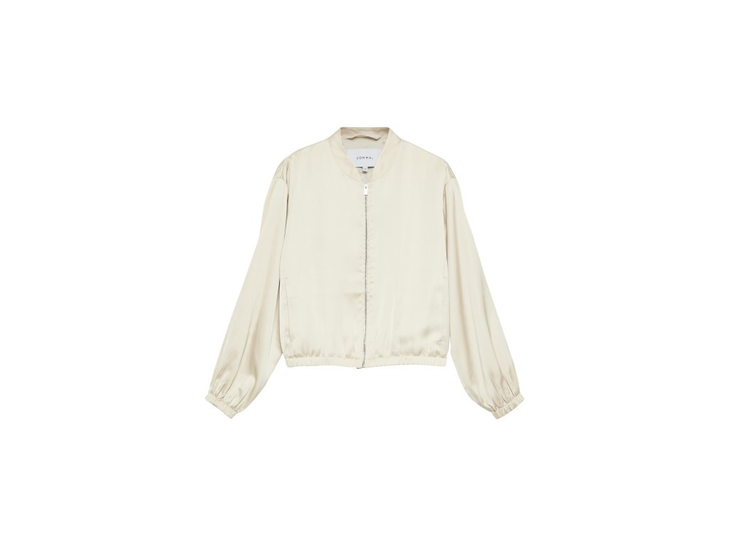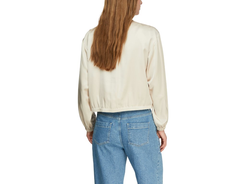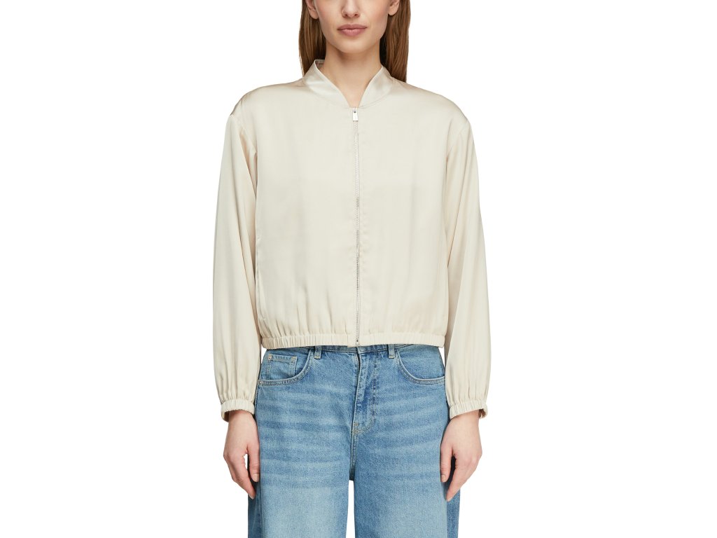 Lehká dámská bunda v elegantním krémovém provedení zaujme svým minimalistickým designem a jemným leskem materiálu. Uvolněný střih zajišťuje pohodlí při nošení, zatímco zapínání na zip a elastické zakončení rukávů i spodního lemu dodávají bundě moderní vzhled. Skvělá volba pro každodenní outfit i stylové vrstvení.