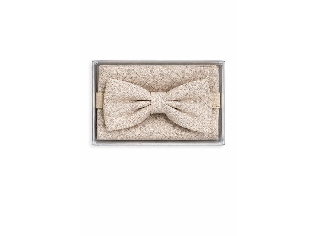 Elegantní pánský set motýlku a kapesníčku v jemném béžovém odstínu je ideální volbou pro slavnostní i formální příležitosti. Decentní strukturovaný vzor dodává celku sofistikovaný vzhled, který snadno sladíte s oblekem i košilí.