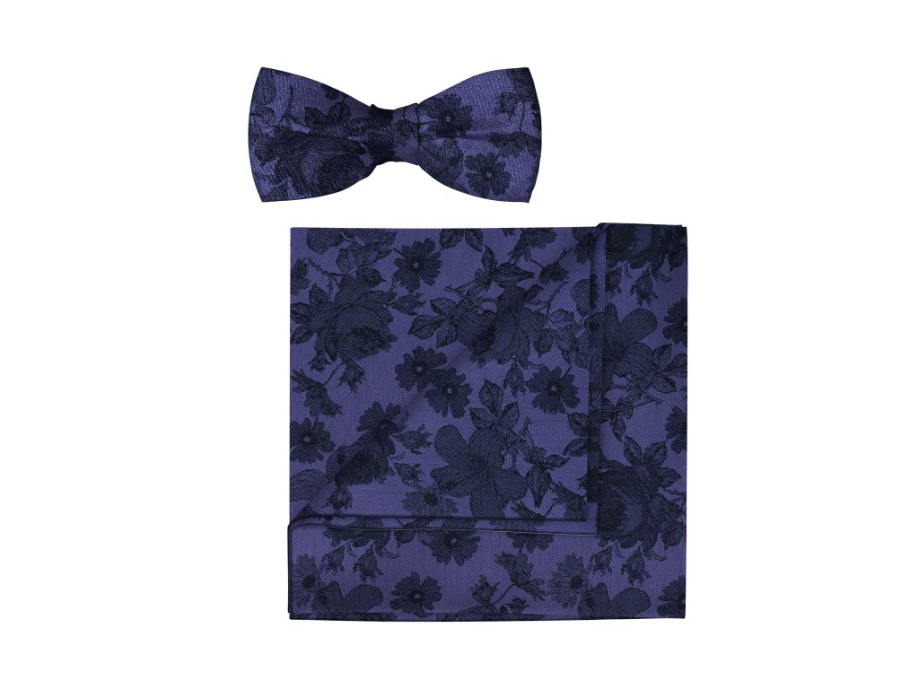 Stylový pánský set tvořený elegantním motýlkem a ladícím kapesníčkem v sytě fialovém odstínu s květinovým vzorem. Jemný lesk a precizní zpracování dělají z tohoto doplňku ideální volbu pro svatby, plesy i další společenské události. Snadno kombinovatelný s jednobarevným oblekem pro dokonalý kontrast.